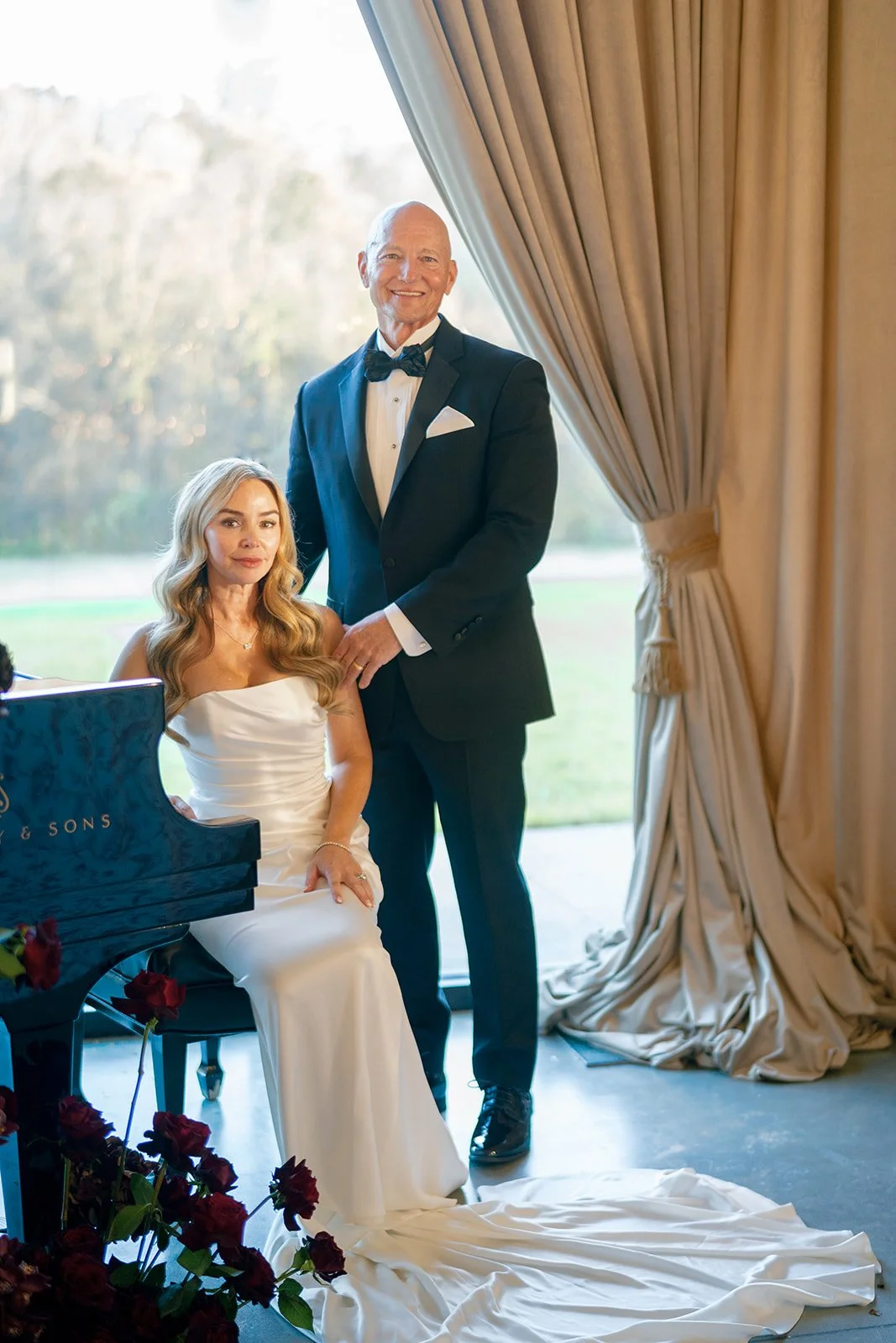 Honey and Thyme Events planned this memorable celebration of love held at The Lumen House in Cleveland, North Carolina. The bride wore a strapless silk gown from Lihi Hod and Jimmy Choo shoes. Blissful Muse applied picture perfect makeup for a glowing look. The groom wore a traditional black tuxedo.