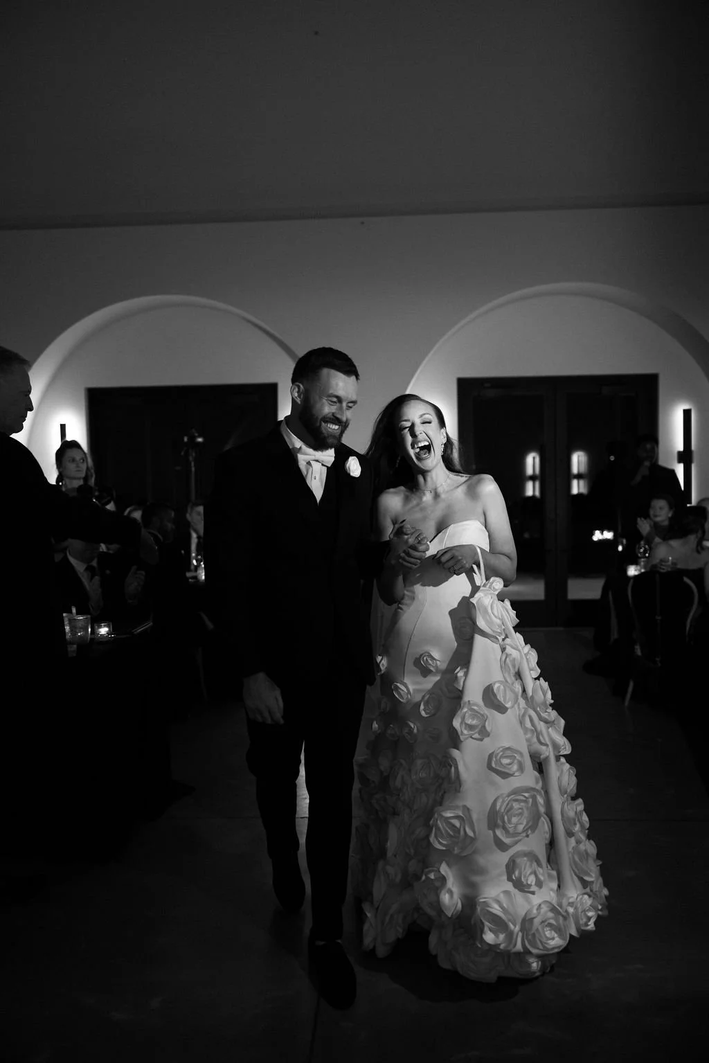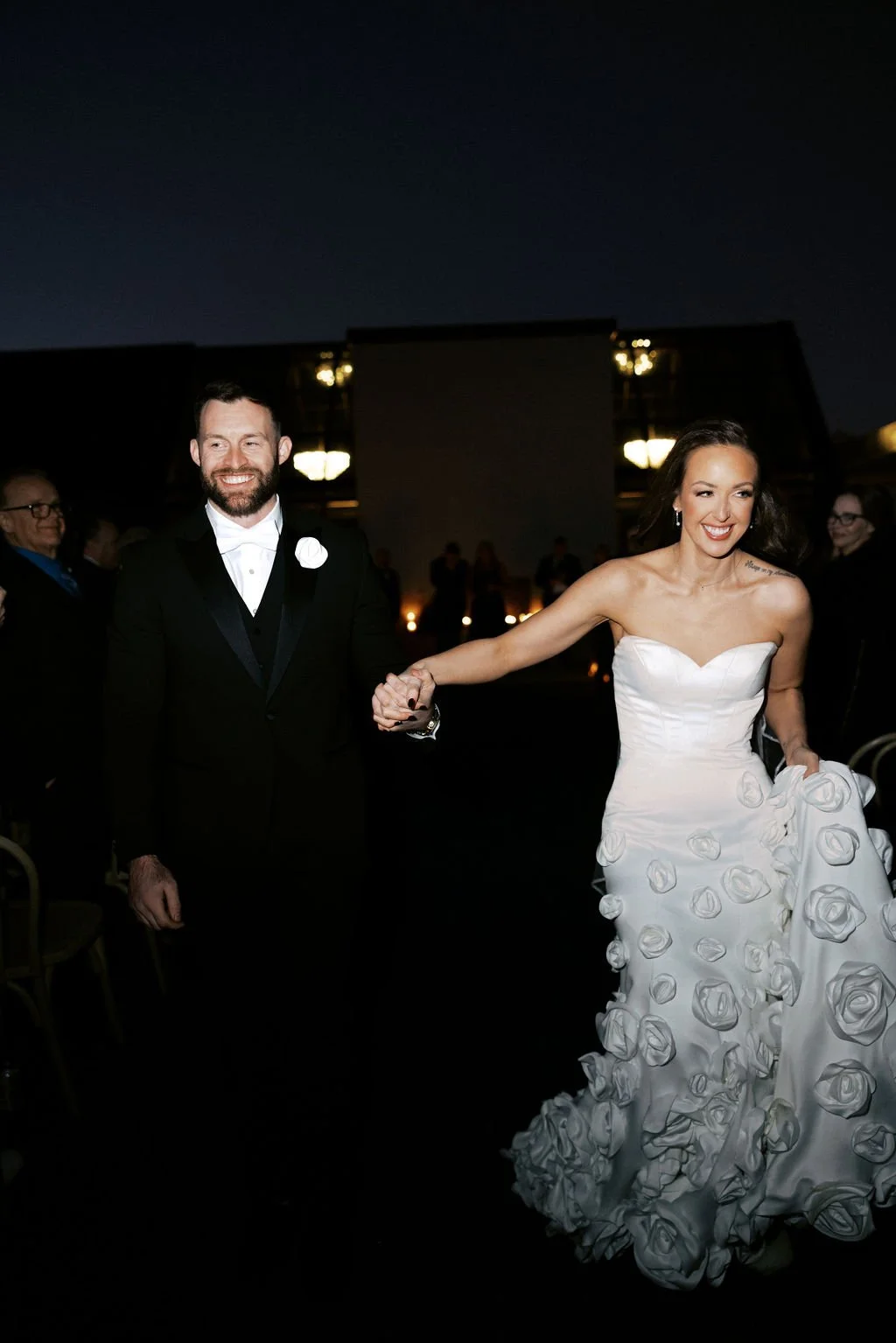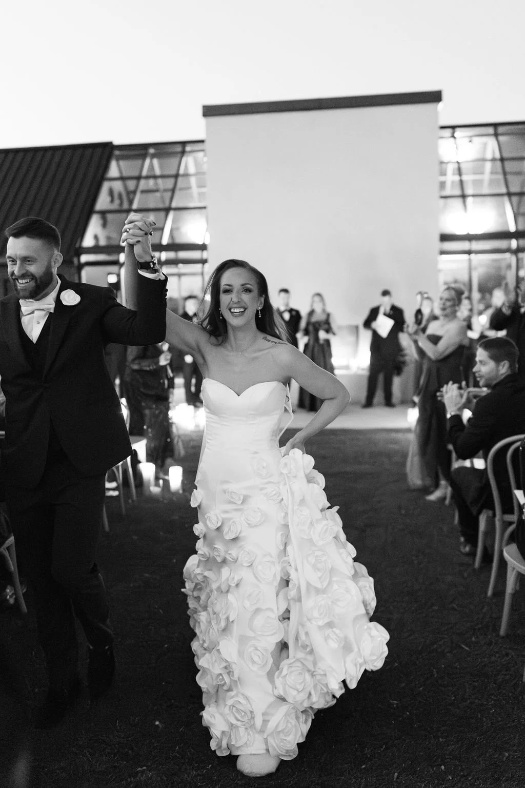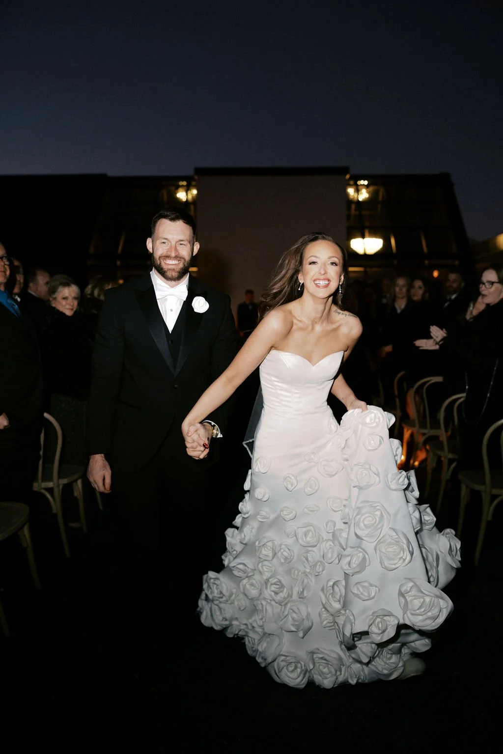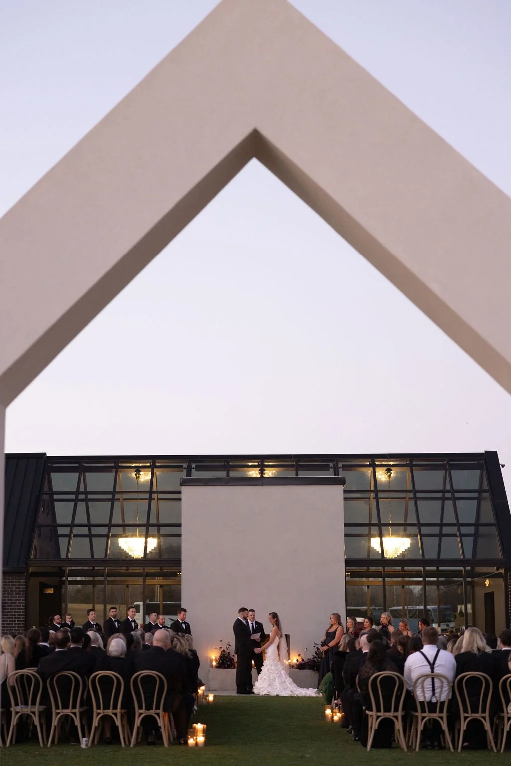 Guests gathered outside for a candlelit ceremony at the stone hearth. They said ‘I do’ surrounded by loved ones, candle flame, and beautiful floral arrangements from Seeded Events and Design. From there, guests moved inside for a seated reception illuminated by candles and decorated with moody florals, keeping on theme with the red and black color palette. Guests enjoyed dinner, drinks, and dancing as the celebration continued into the dark of night. We absolutely adored this red and black celebration for Madison & Dylan; moody in all of the right ways!