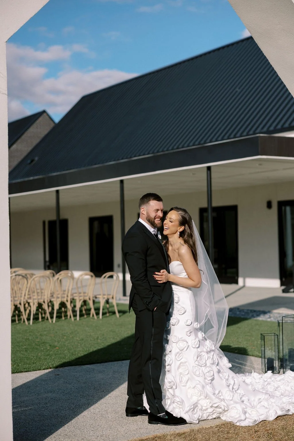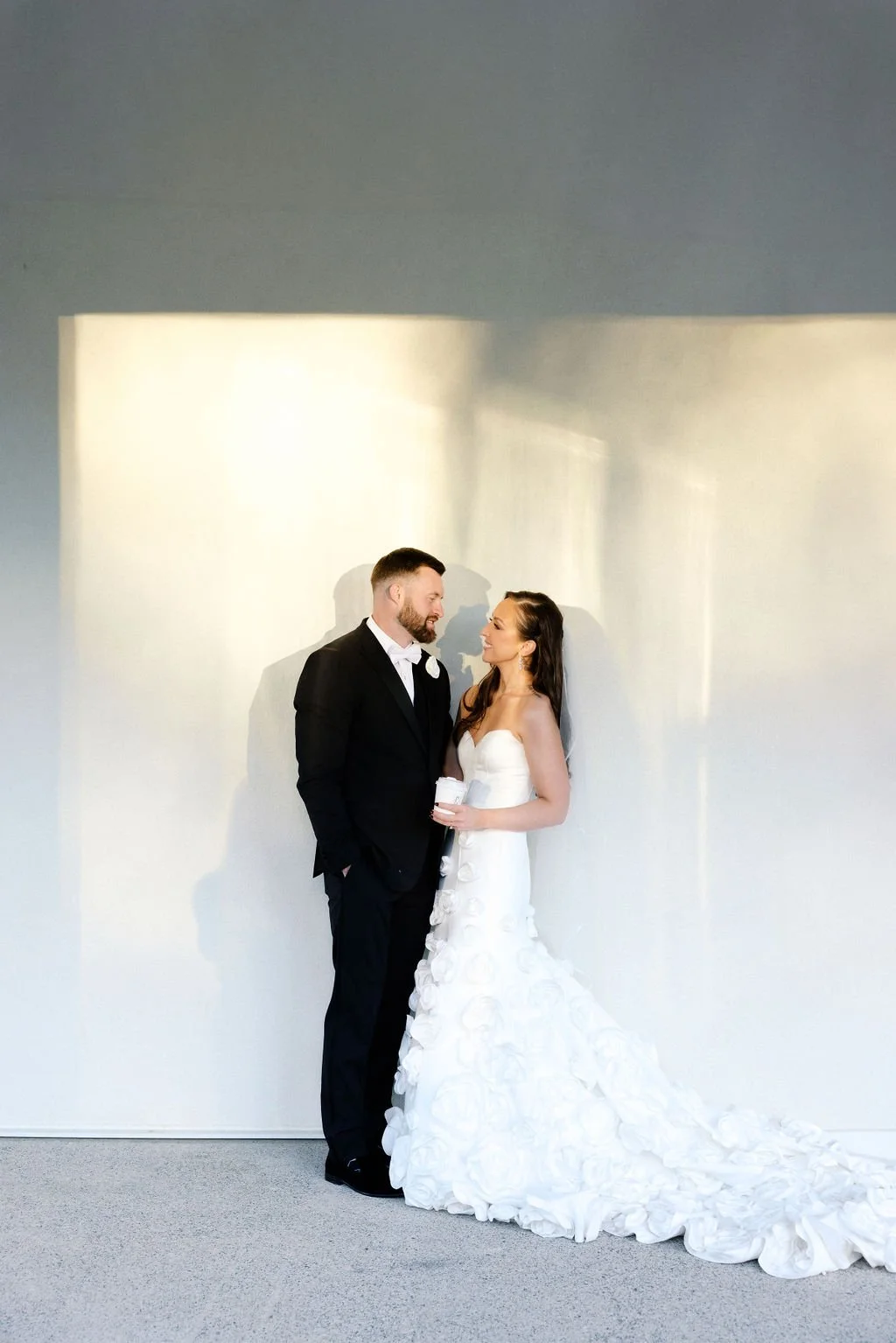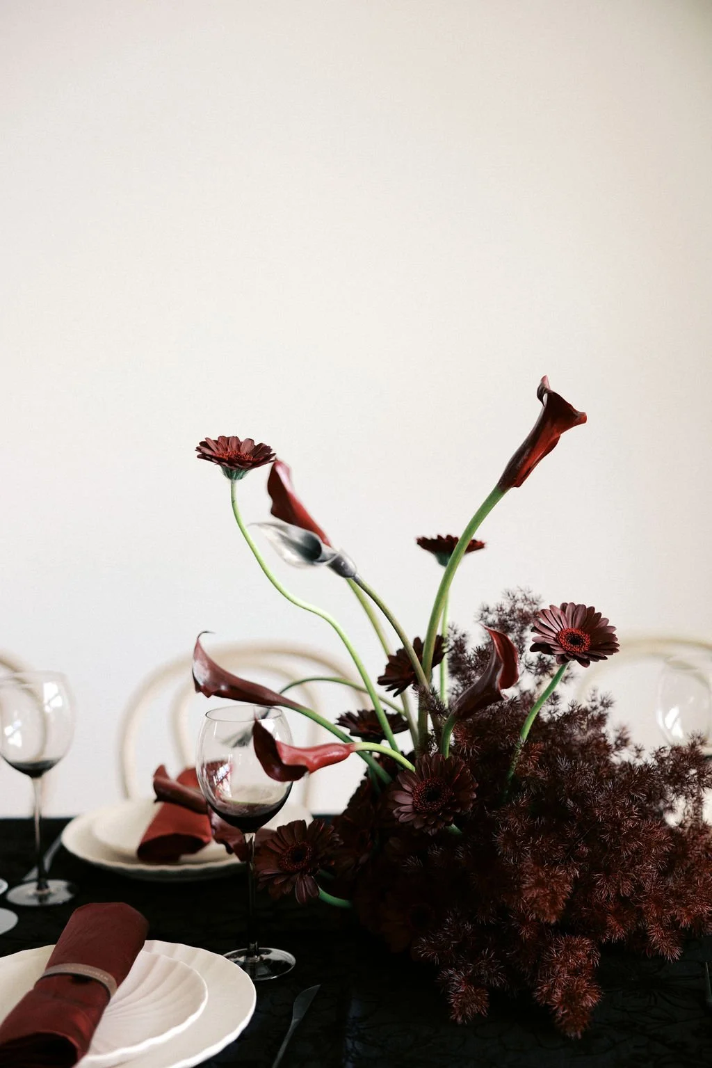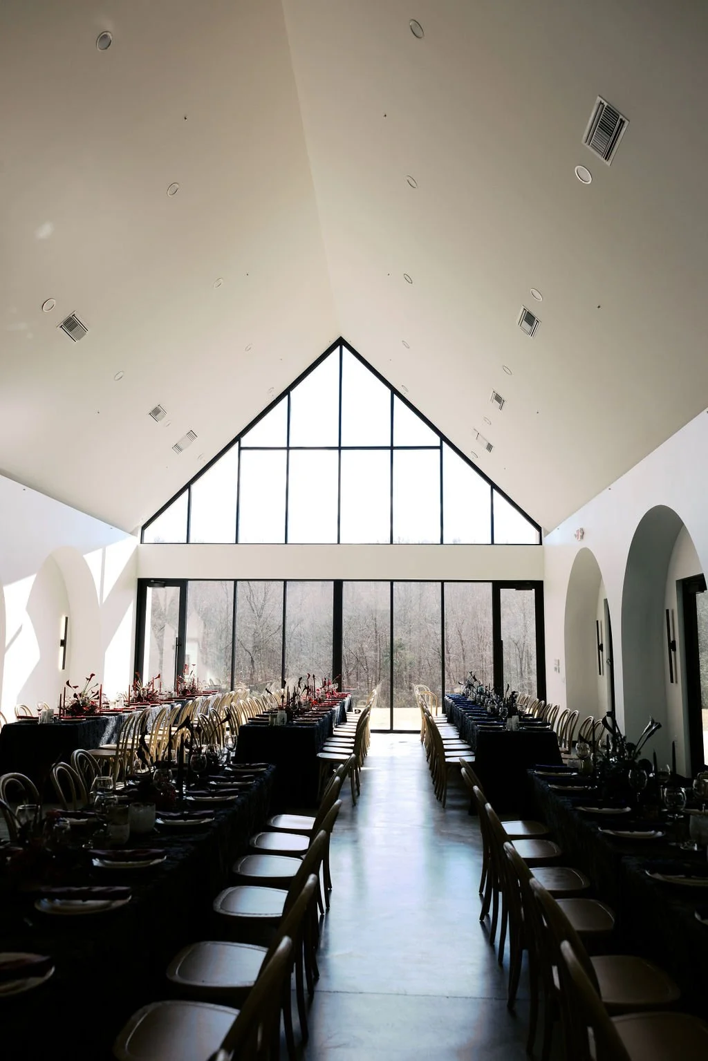 Madison and Dylan’s February wedding at The Lumen House was the perfect mix of moody and romantic, beautifully captured by Erin Michele Photo. The day started out sunny with perfect weather for portraits prior to an evening ceremony. The bride and groom to be took photos with their pup and utilized the empty reception space for more portraits. Honey + Thyme Events planned this stunning celebration with a chic red and black color palette.