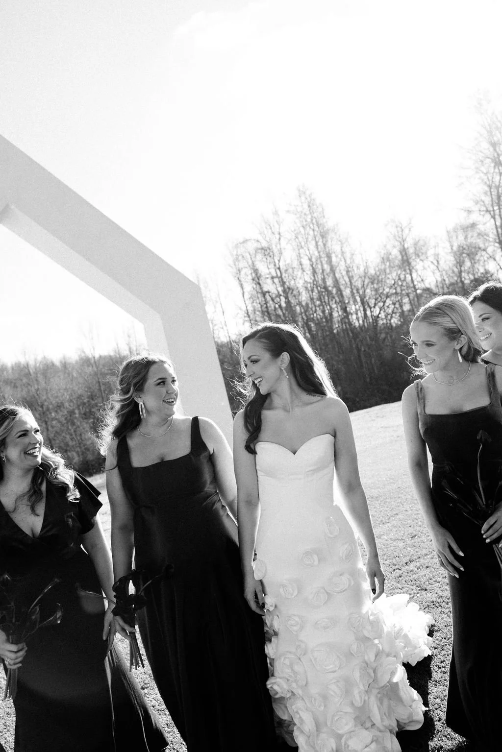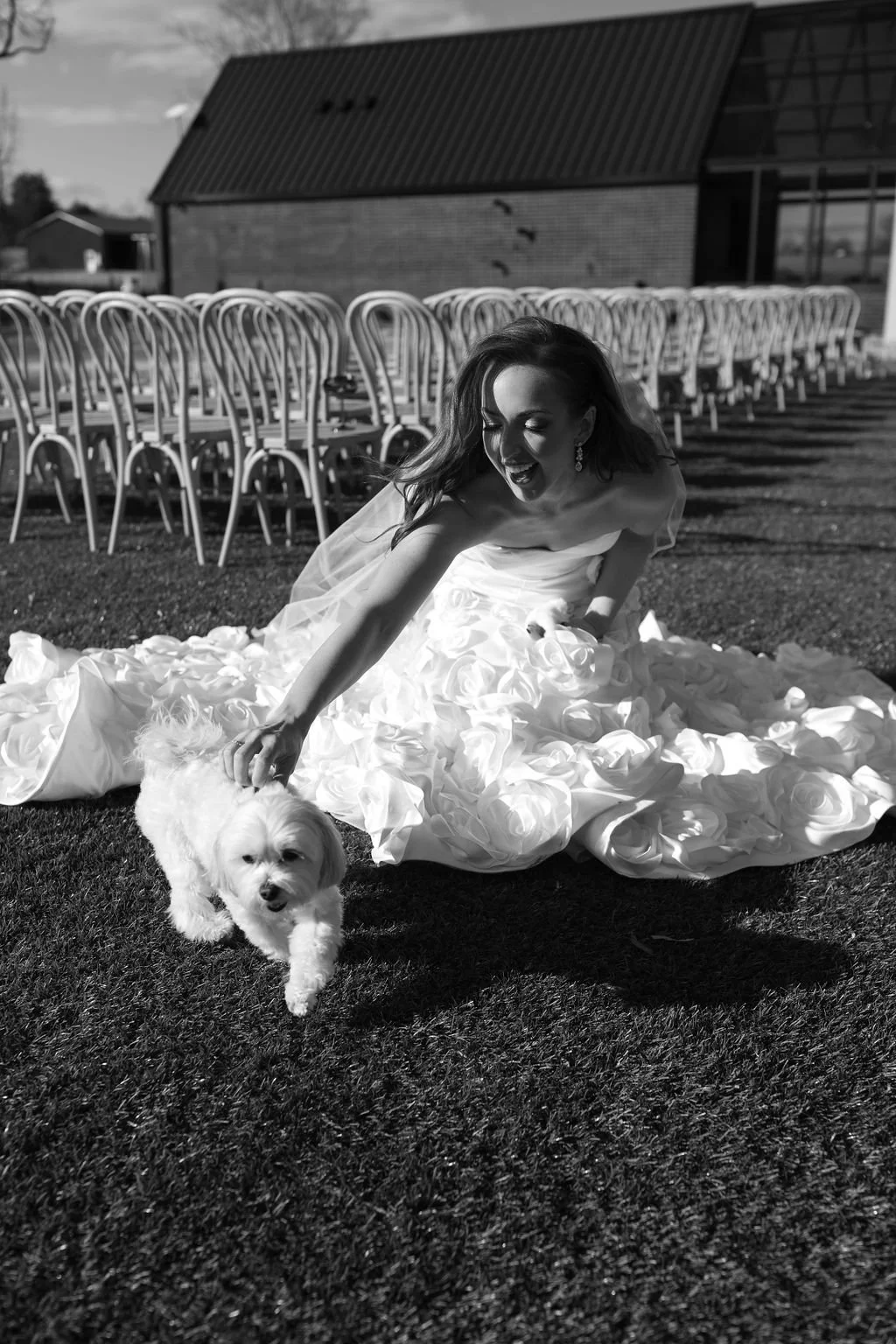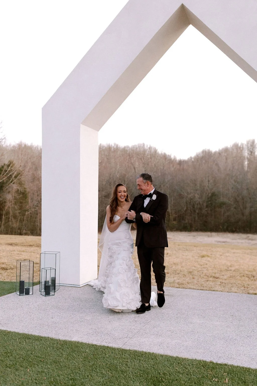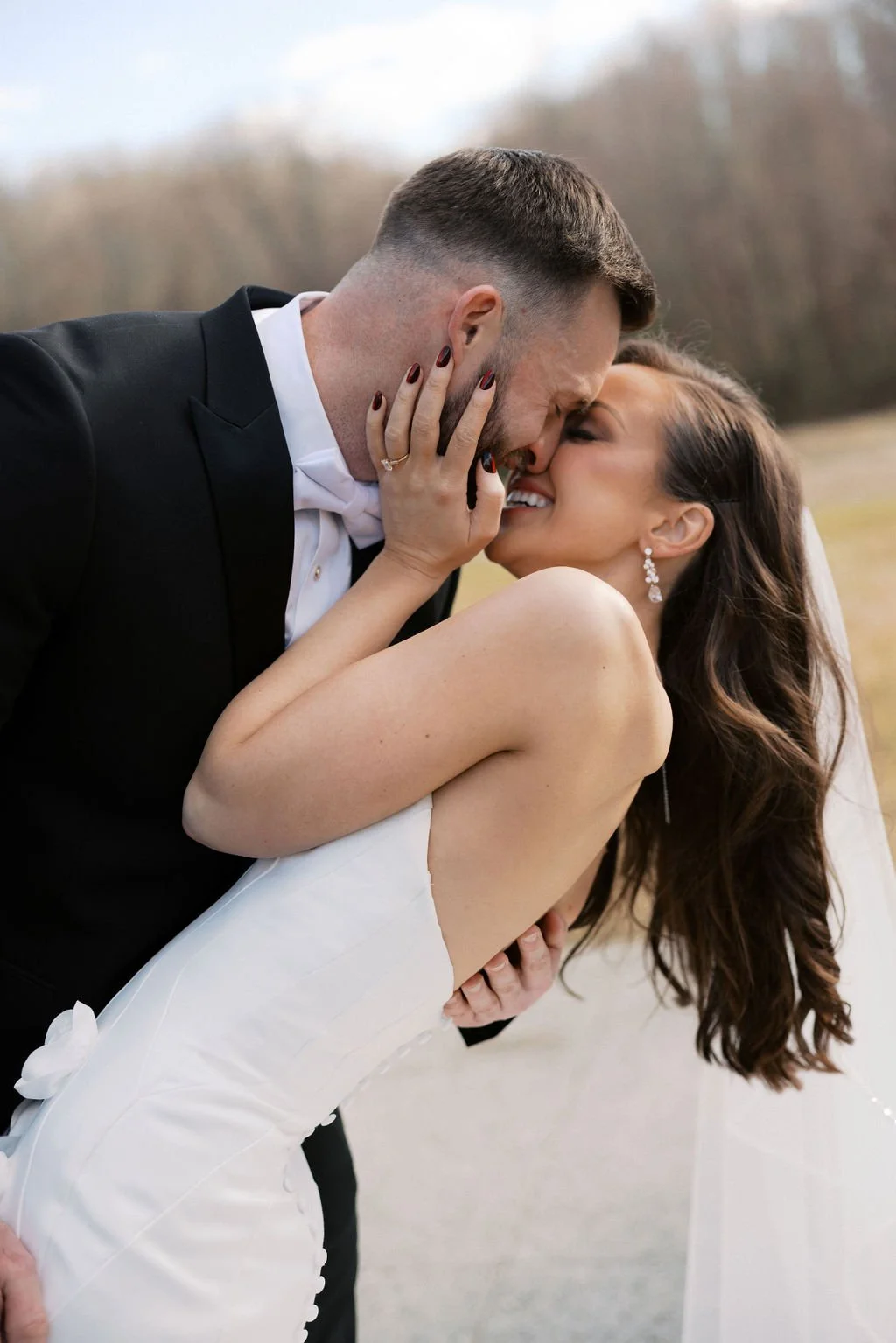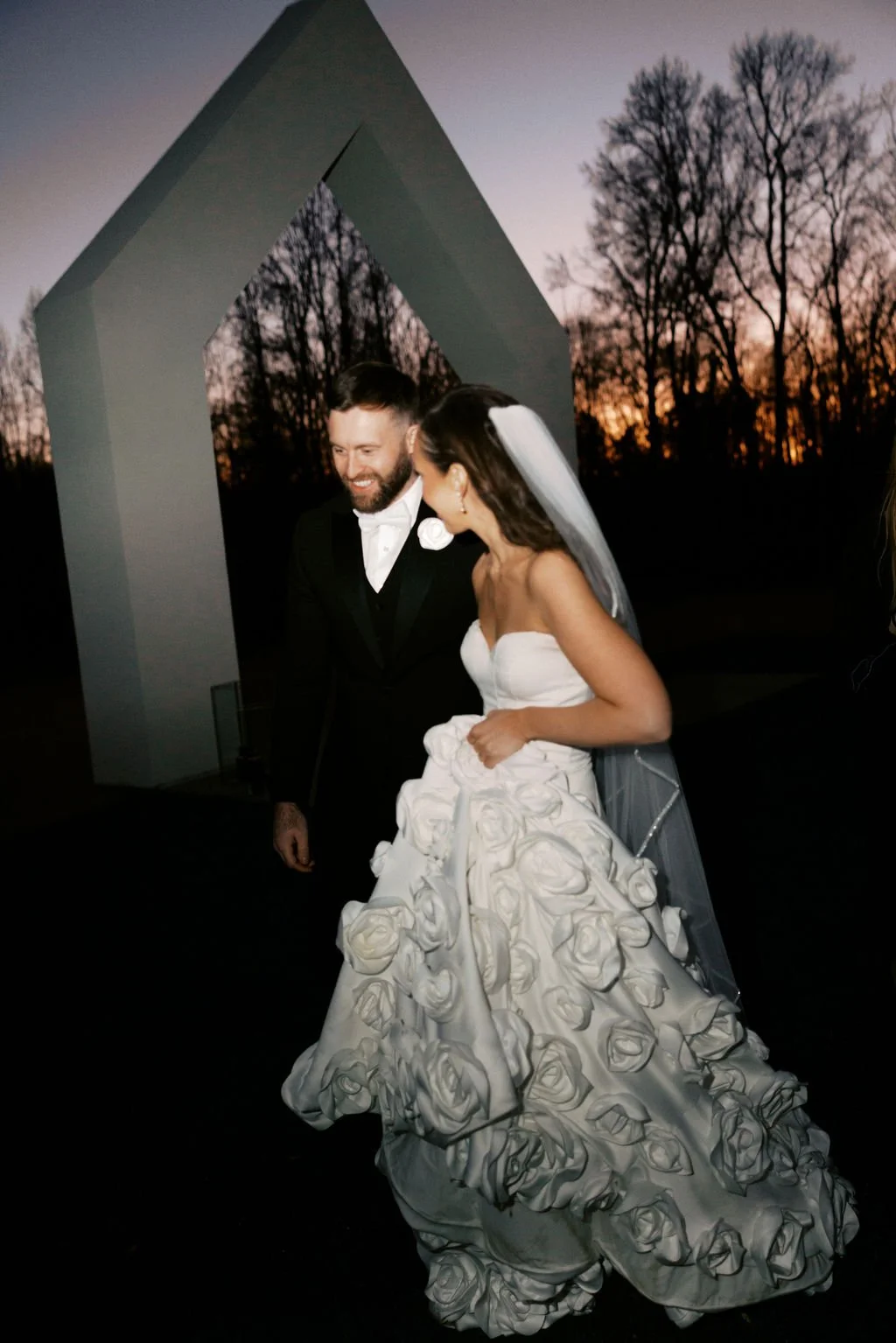 Madison and Dylan’s February wedding at The Lumen House was the perfect mix of moody and romantic, beautifully captured by Erin Michele Photo. The day started out sunny with perfect weather for portraits prior to an evening ceremony. The bride and groom to be took photos with their pup and utilized the empty reception space for more portraits. Honey + Thyme Events planned this stunning celebration with a chic red and black color palette.