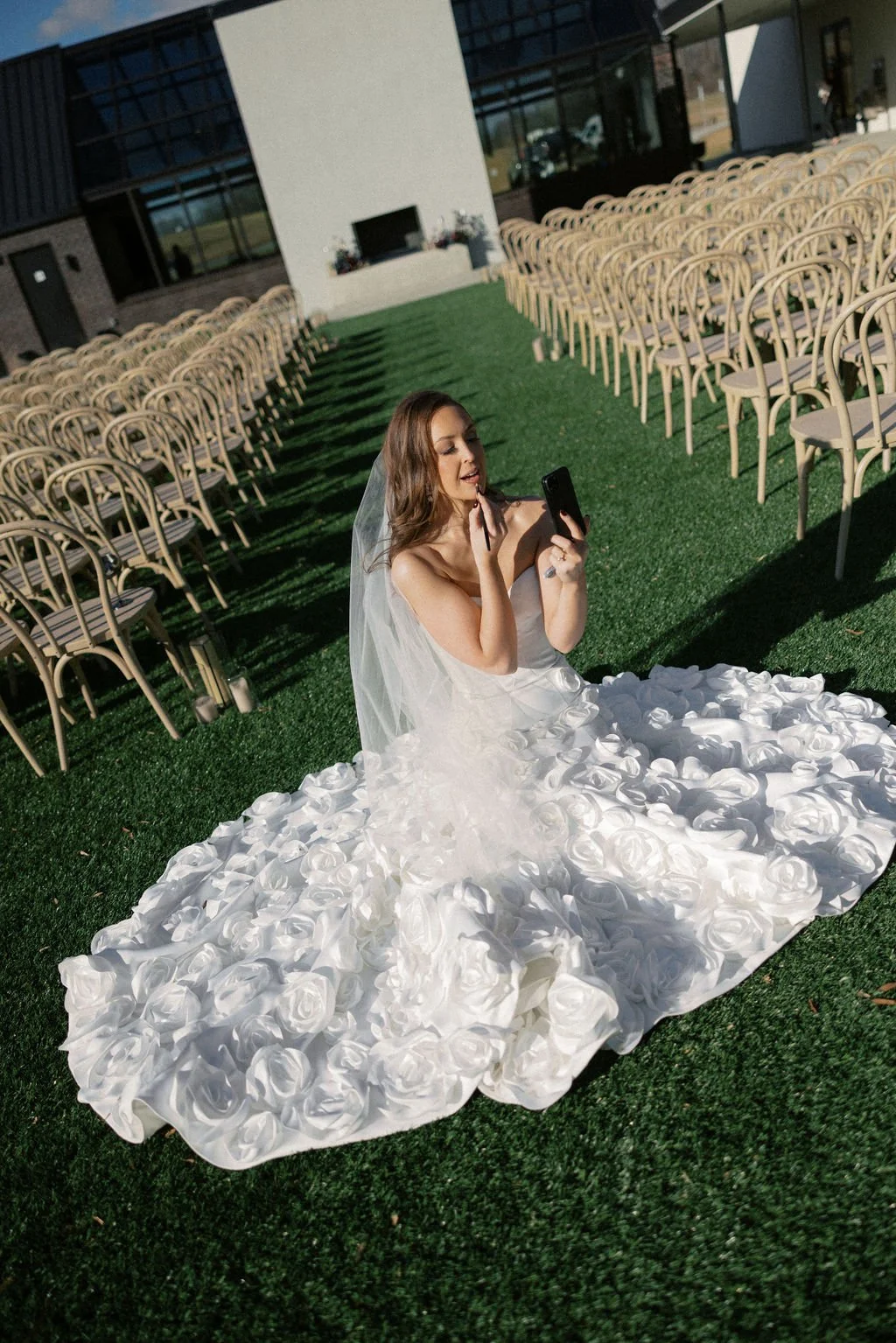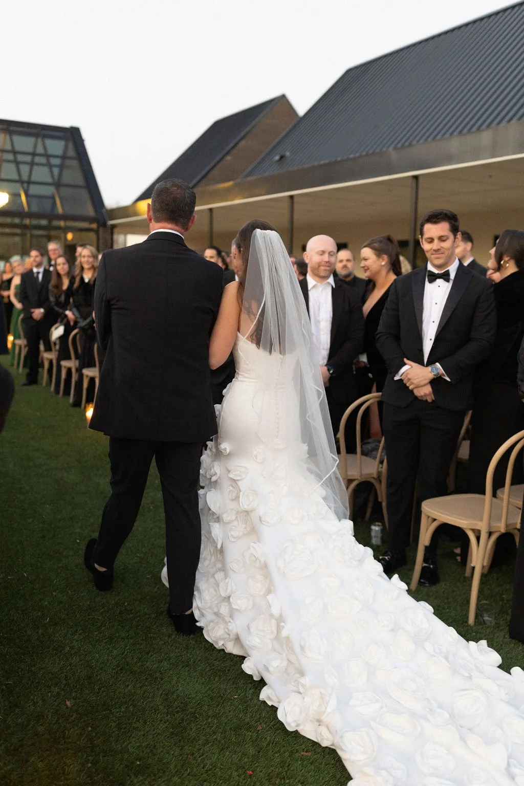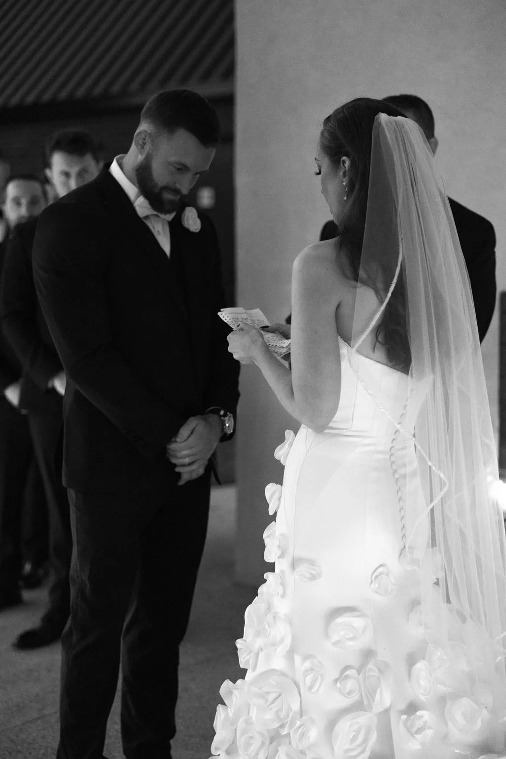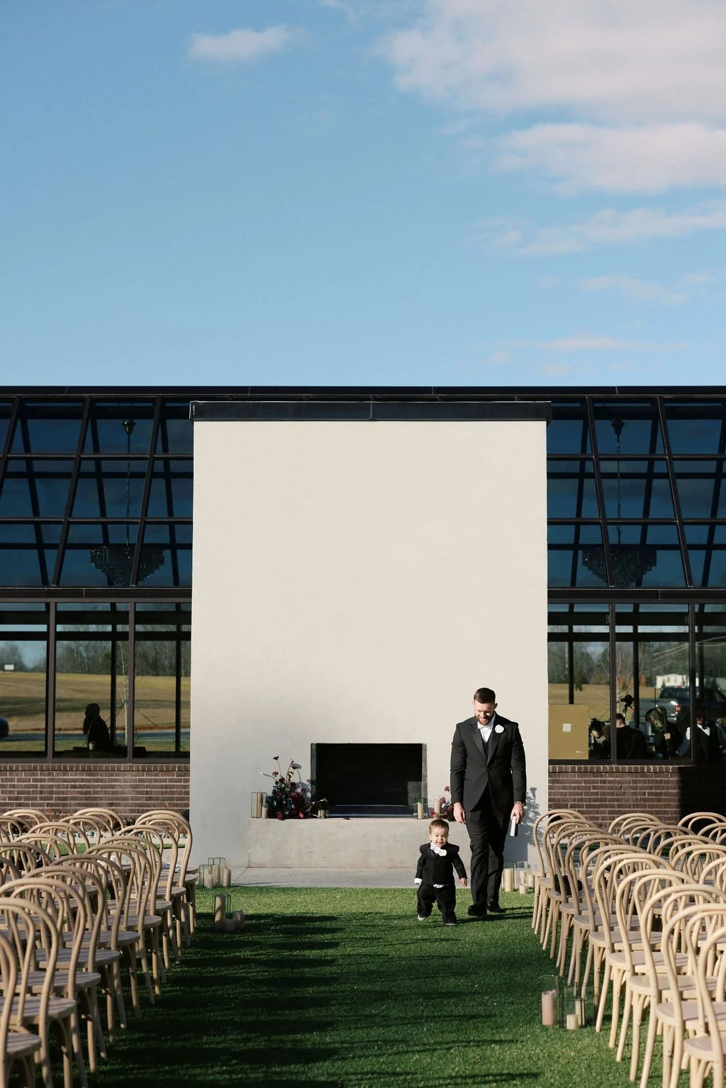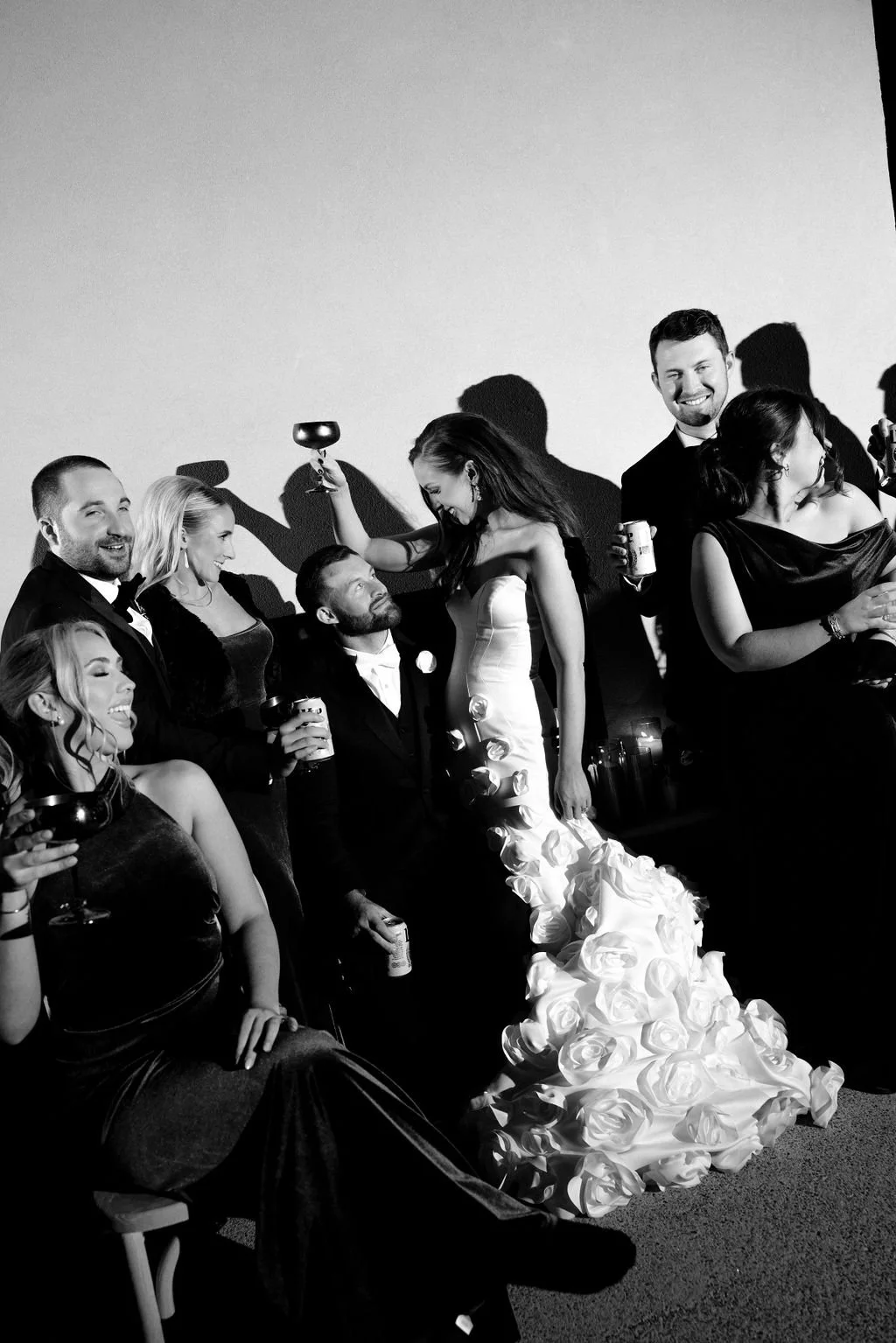 Madison and Dylan’s February wedding at The Lumen House was the perfect mix of moody and romantic, beautifully captured by Erin Michele Photo. The day started out sunny with perfect weather for portraits prior to an evening ceremony. The bride and groom to be took photos with their pup and utilized the empty reception space for more portraits. Honey + Thyme Events planned this stunning celebration with a chic red and black color palette.