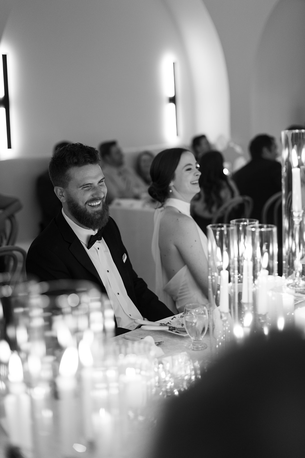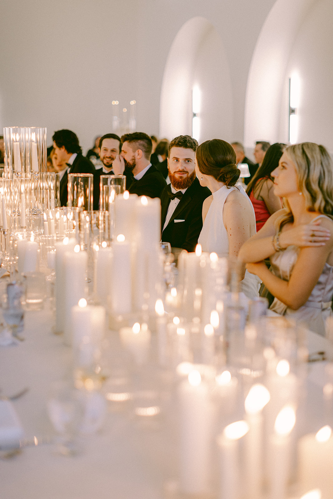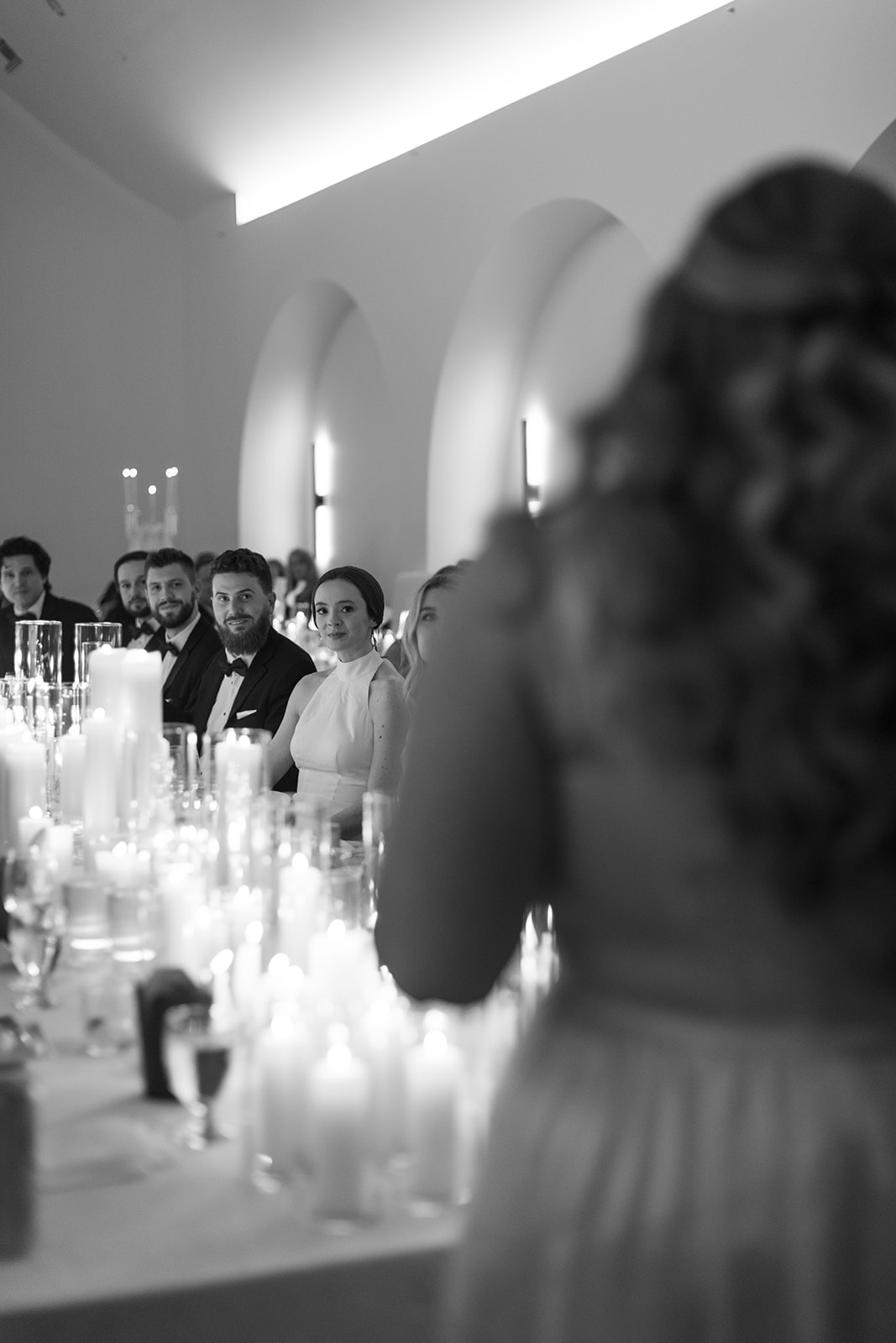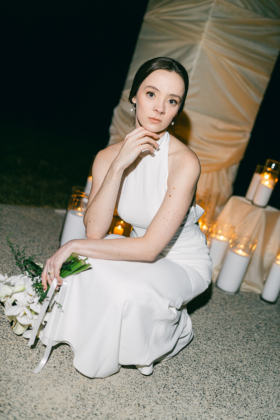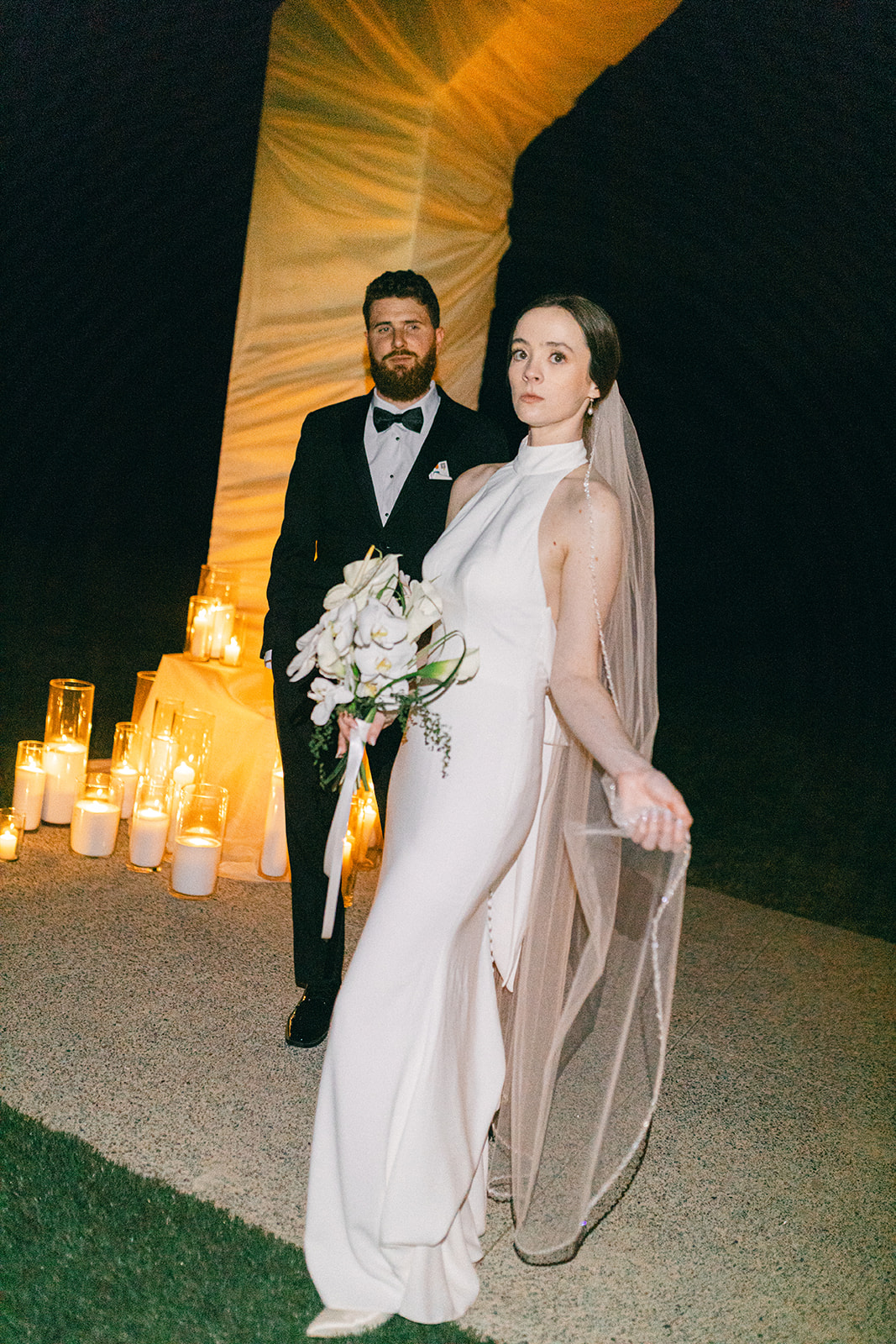 Their ceremony was held outside under the modern wedding arch. They draped fabric over the arch adding to the beautiful ambiance of the ceremony. They said ‘I do’ surrounded by loved ones on the lawn before heading into the glasshouse for a cocktail hour with bartending from QC Catering. From there guests headed into the reception area for a seated meal. The space was illuminated by the glow of candles as the tables were all lined with votives. Crisp white linens and classic white floral arrangements from Birch n’ Willow sat atop each table creating a chic, timeless look to the space. Guests headed outside for a sweet treat from the Cooling Out Ice Cream Truck, a fun way to end the night! Maye & Sadler’s wedding was the perfect spring celebration here in North Carolina and we loved hosting their big day!