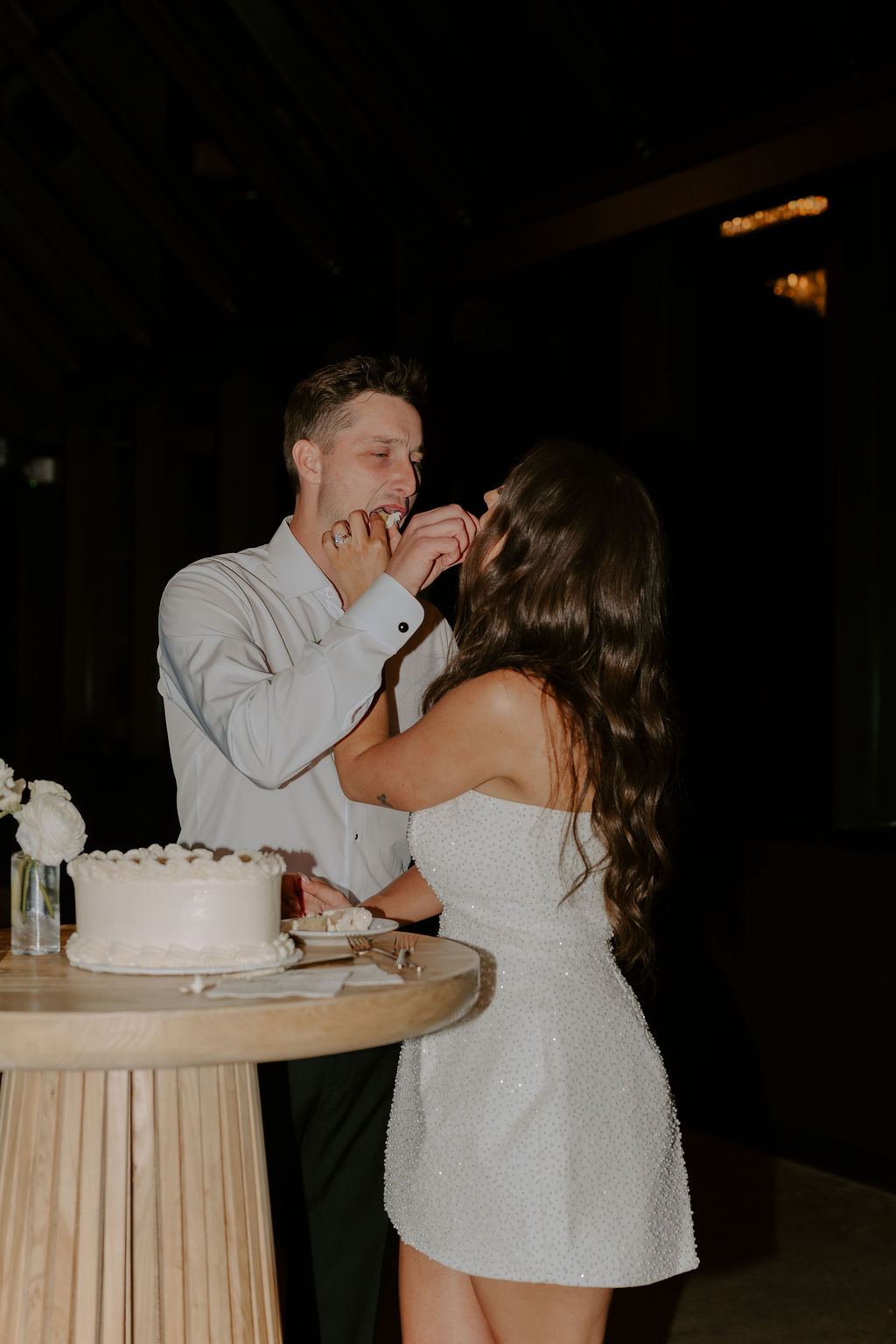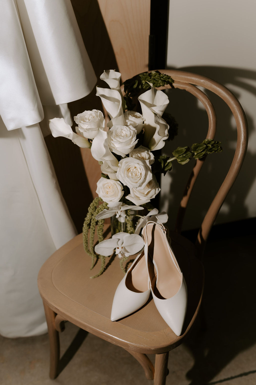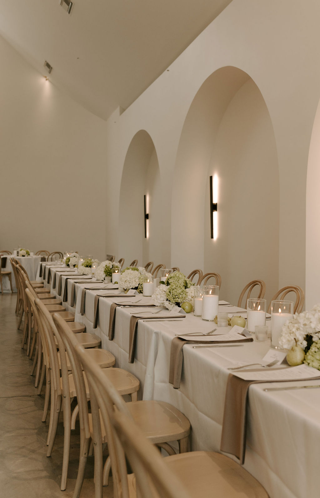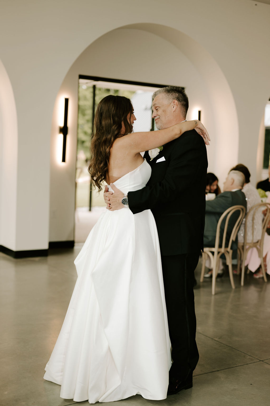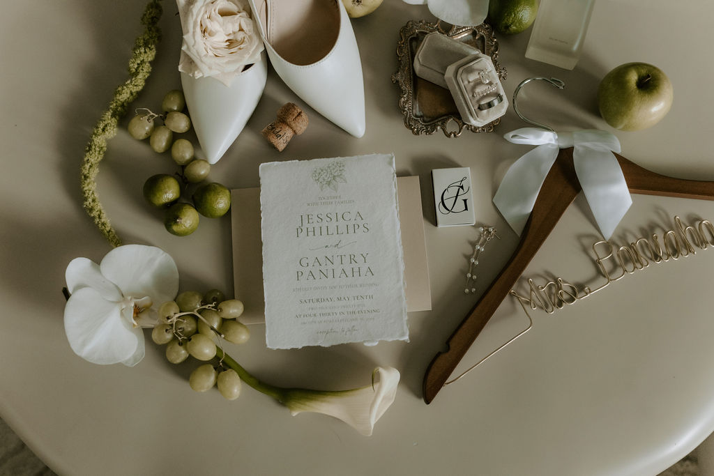 From there, guests moved indoors for the seated reception. They were greeted with custom signs from, Unspoken Designs, welcoming them into the space. Rentals from Curated Events transformed the space into a pear-adorned wonderland with light wood chairs, textured linens, and green and white florals. They enjoyed a plated meal from the talented QC Catering followed by a delicious cake from Lei Lei’s Bakery. From there Vinylly Wed kept the vibes high and dance floor full as guests turned up the heat. Our bride and groom chose to finish out the night with a romantic solo dance, just the two of them, as they reflected on the day. This was such a beautiful wedding celebration at The Lumen House. Thank you for letting us host your special day!