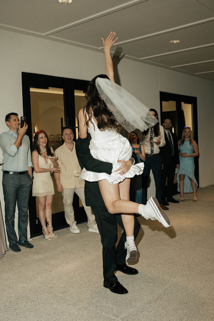 Victoria & Kody’s intimate micro-wedding proved that a little rain only adds to the magic. On a semi-rainy day, their close-knit group brought big energy, dancing under the veranda, spilling out onto the turf, and even twirling in the rain.