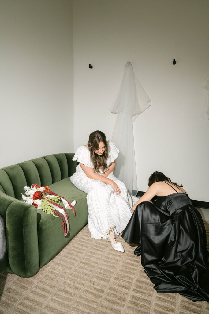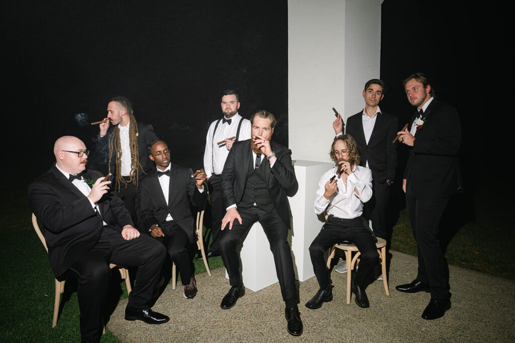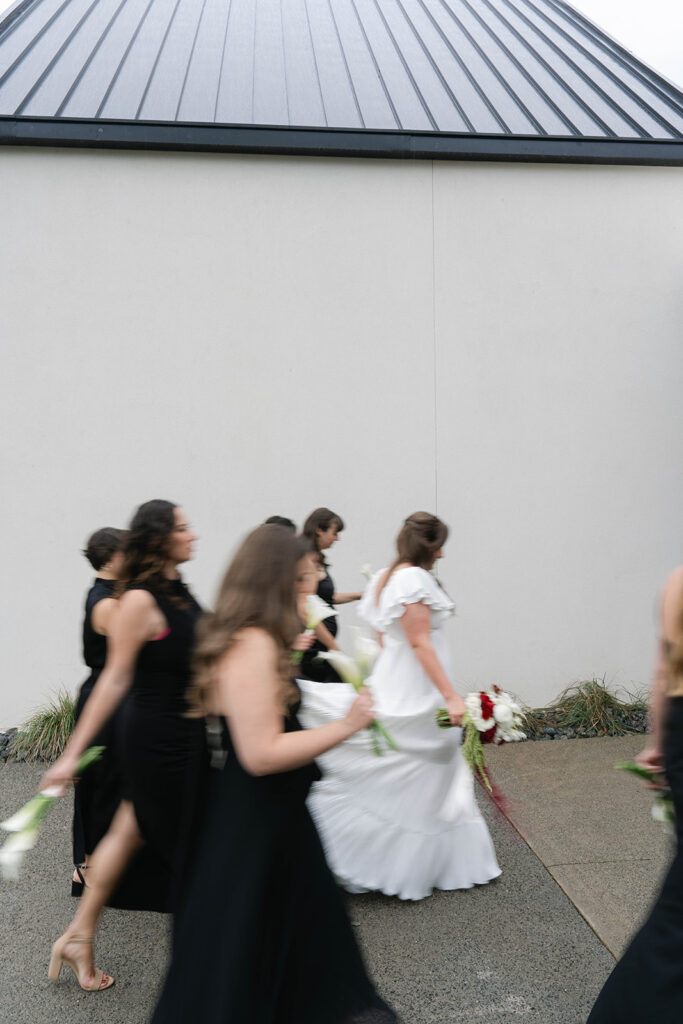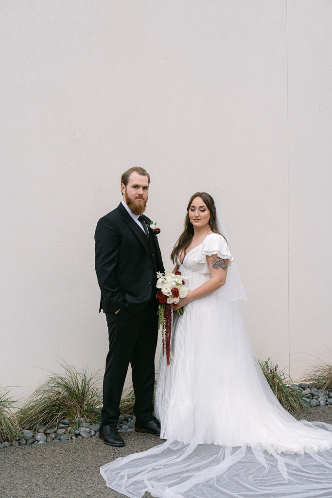 Andre Blom Photography captured the depth and atmosphere of the day with a cinematic, artful approach, preserving both the moody tones and the joyful energy shared between Olivia and Jacob. Olivia’s look was completed with soft, polished hair by Ashley Steganga, while romantic, modern florals by Zooms and Blooms added texture and movement to the design.