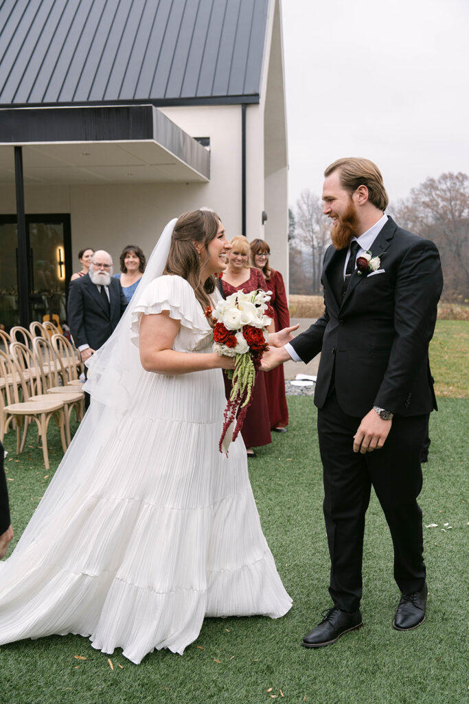 Olivia and Jacob’s wedding day was a beautiful blend of joy, emotion, and modern, moody elegance. Thoughtfully planned by Jen Williams, the celebration felt intentional and deeply personal, with an aesthetic that balanced contemporary design and heartfelt moments. From quiet, emotional exchanges to bursts of laughter and celebration, the day was filled with feeling.