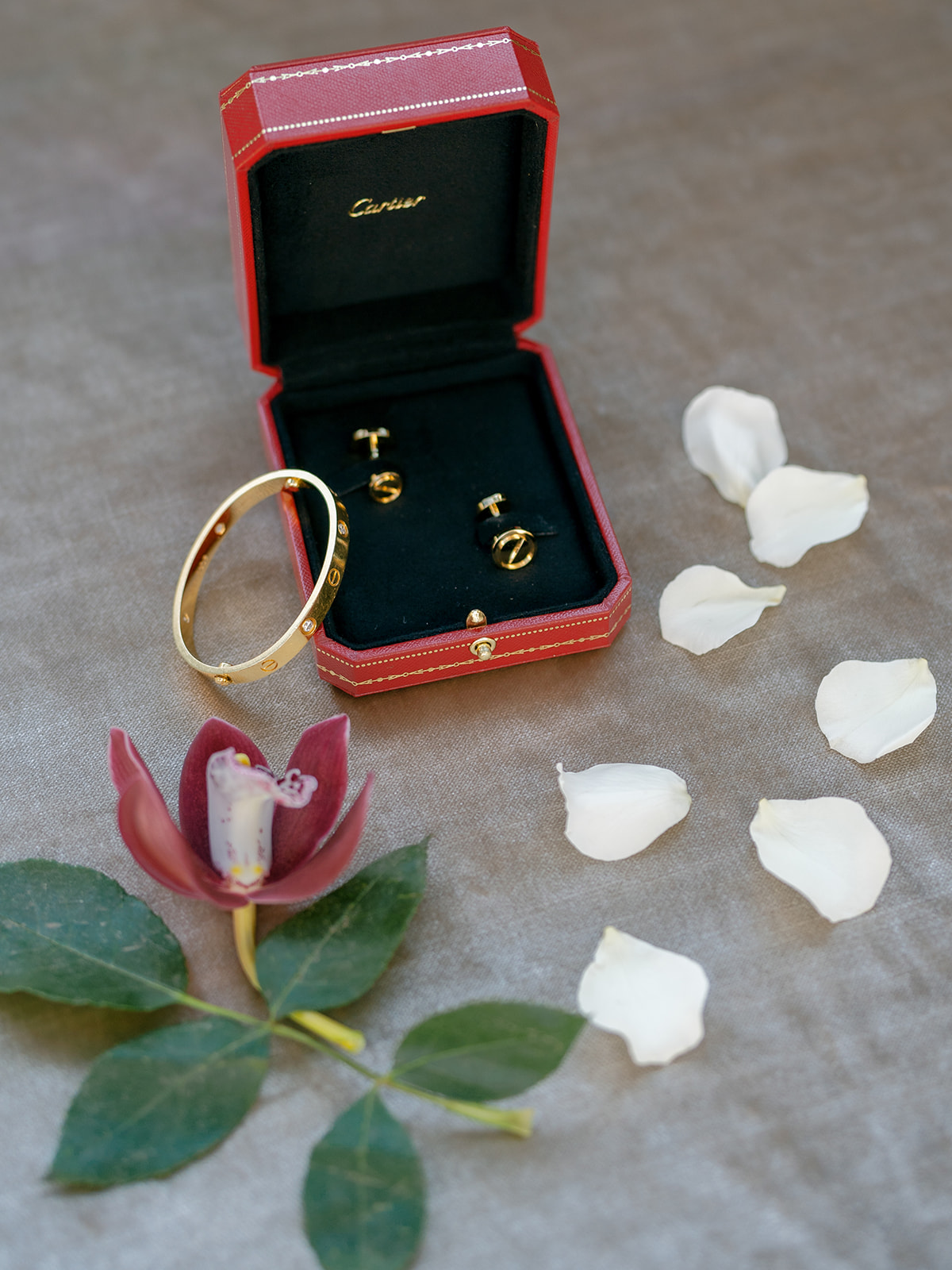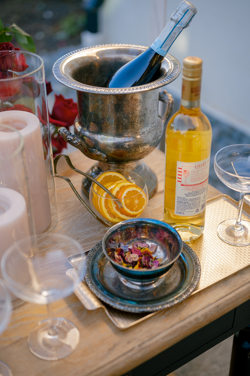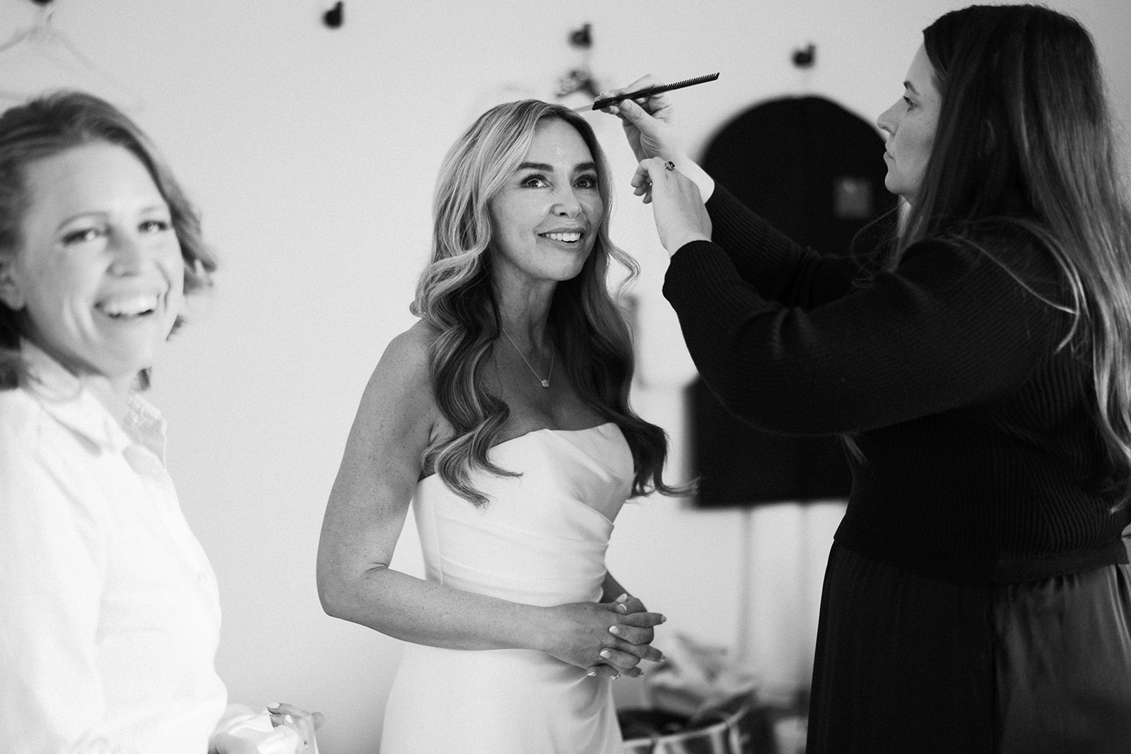 Honey and Thyme Events planned this memorable celebration of love held at The Lumen House in Cleveland, North Carolina. The bride wore a strapless silk gown from Lihi Hod and Jimmy Choo shoes. Blissful Muse applied picture perfect makeup for a glowing look. The groom wore a traditional black tuxedo.