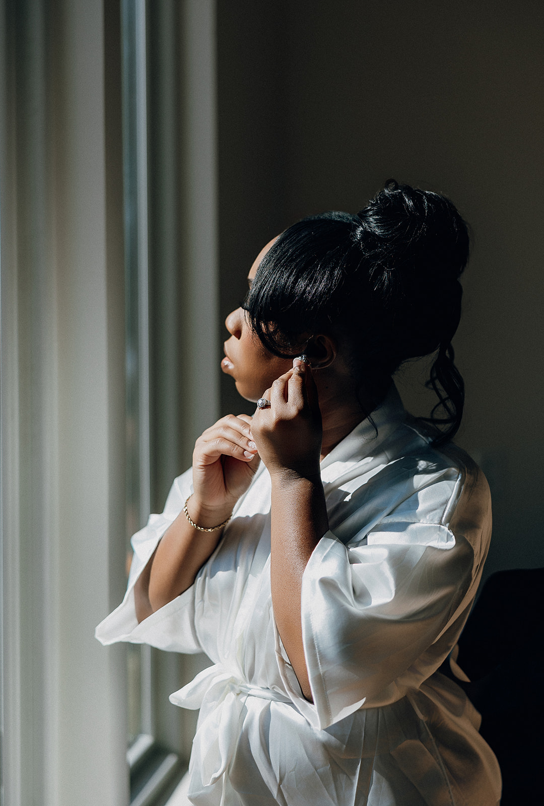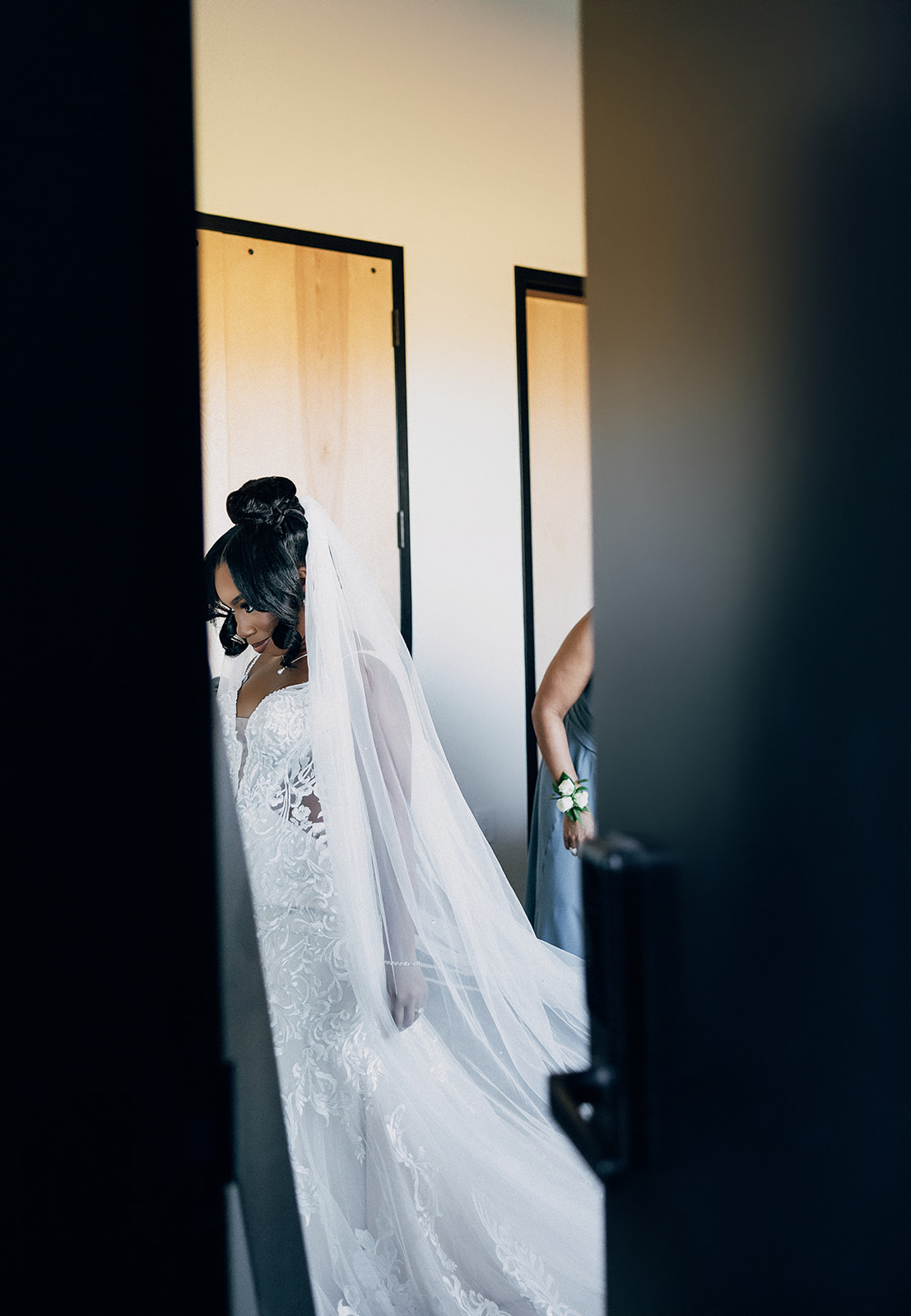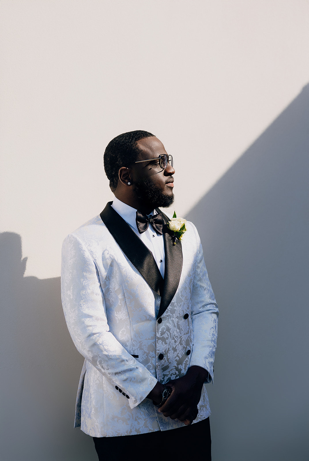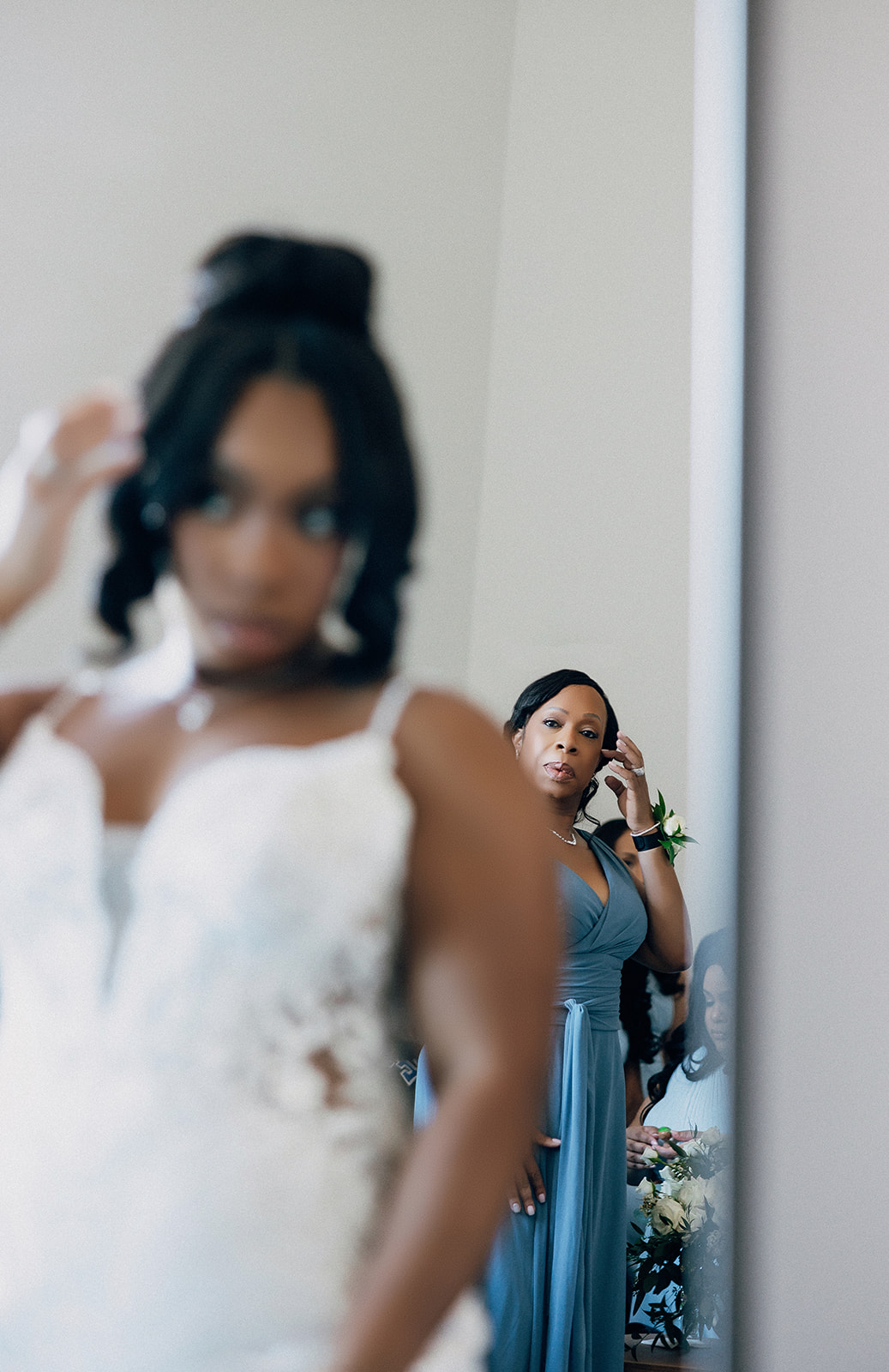 Core Creations planned this beautiful in blue wedding celebration at The Lumen House, a modern wedding venue, in North Carolina. Hues of baby blue marked the day’s celebrations starting with the bridesmaids in blue satin robes. Amber Lynne Beauty and Chosen 1 Studio provided the glam for our gorgeous bride and her girls as they got read yin the bridal suite. She opted for a stunning beaded dress with straps and a dramatic chapel length veil to compliment the look. Her groom chose a sharp satin paisley tuxedo jacket with black bow tie and pants. SB Photography and J Alex Films flawlessly captured the day, in tandem, for the couple to relive again and again.