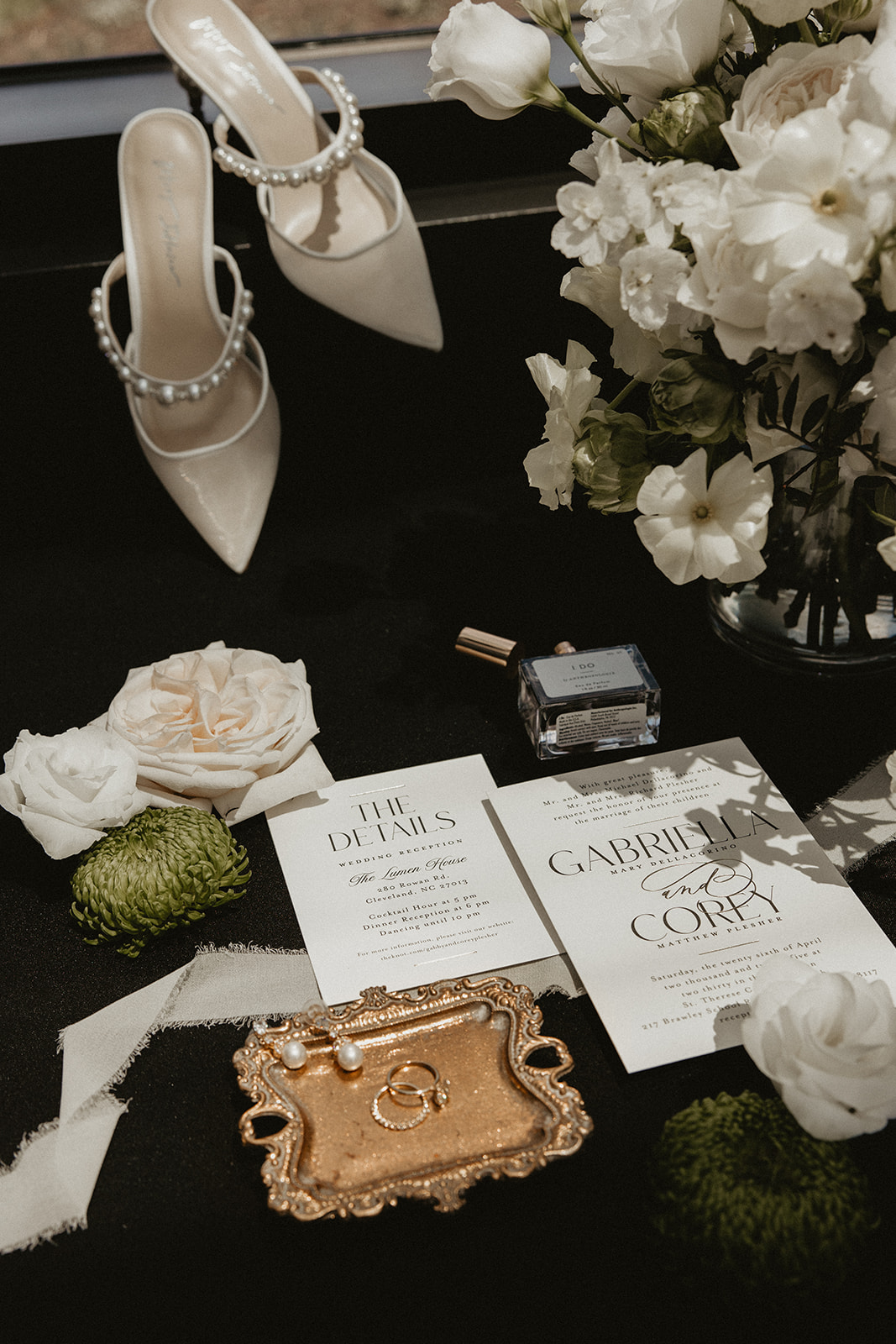 ACE & Co. planned a beautiful spring wedding for Gabby & Corey at The Lumen House, a modern wedding venue, in North Carolina. The bride and her bridesmaids got ready in the bridal suite on campus with the help of Jillian Marie Beauty and Kaitlyn Elizabeth Styling. Our bride opted for an all white bouquet from Viivi Florals and a fitted sparkling gown with floral appliques. They made their way to the traditional church ceremony off-campus as they exchanged vows surrounded by loved ones.