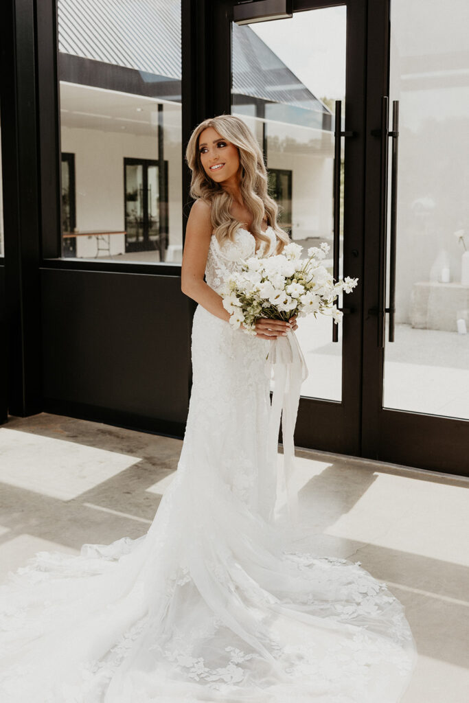 ACE & Co. planned a beautiful spring wedding for Gabby & Corey at The Lumen House, a modern wedding venue, in North Carolina. The bride and her bridesmaids got ready in the bridal suite on campus with the help of Jillian Marie Beauty and Kaitlyn Elizabeth Styling. Our bride opted for an all white bouquet from Viivi Florals and a fitted sparkling gown with floral appliques. They made their way to the traditional church ceremony off-campus as they exchanged vows surrounded by loved ones.