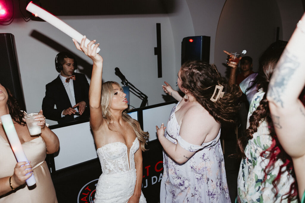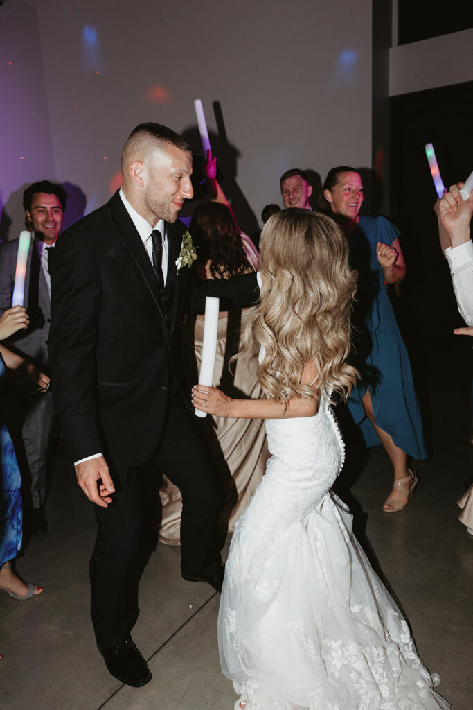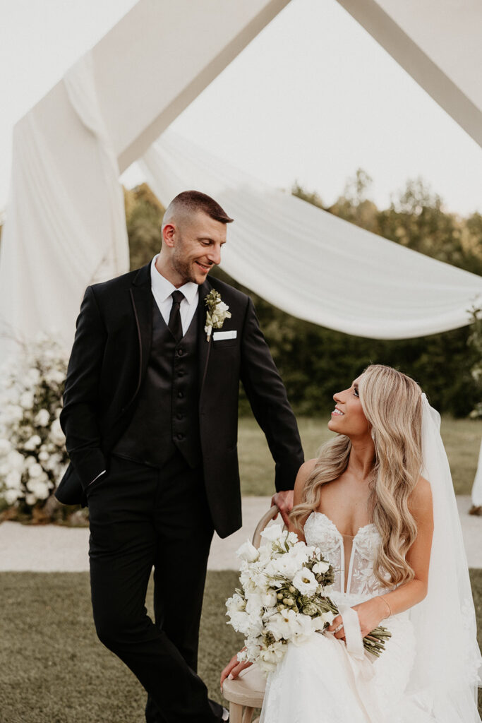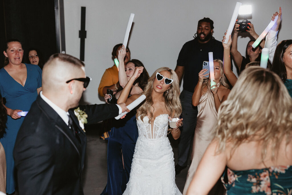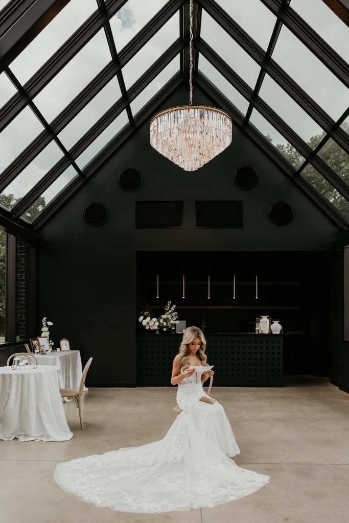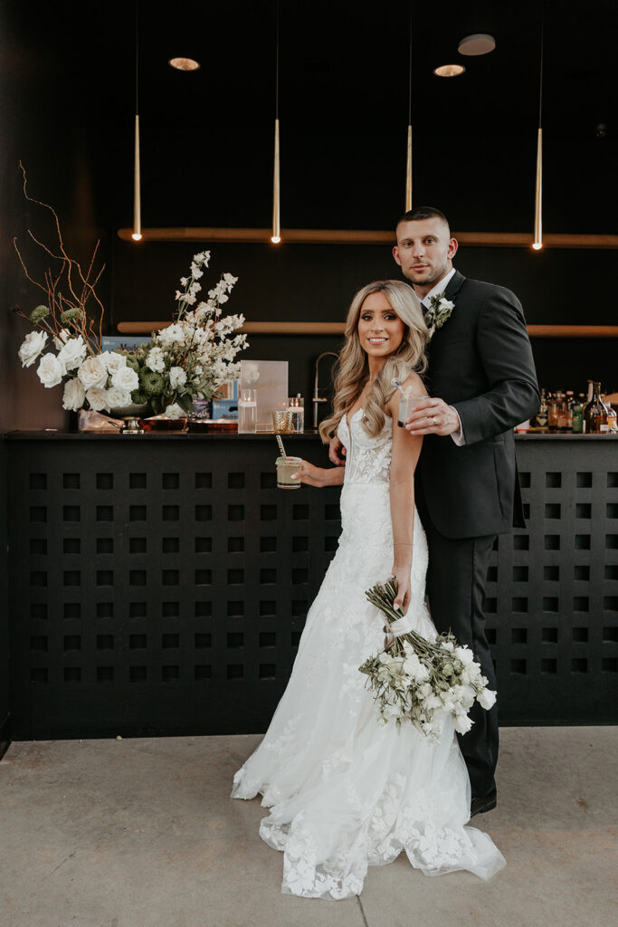 Following their ceremony, they had a time of stunning portraits outside at The Lumen House. Bella Liz Photography captured every detail with the help of Lexa Rae Films and The Mrs. POV. The newlyweds posed underneath the venue’s arch as they documented the momentous occasion. Guests moved into a cocktail hour in the greenhouse, enjoying drinks from Uptown Catering, before being whisked away to the stunning indoor reception.