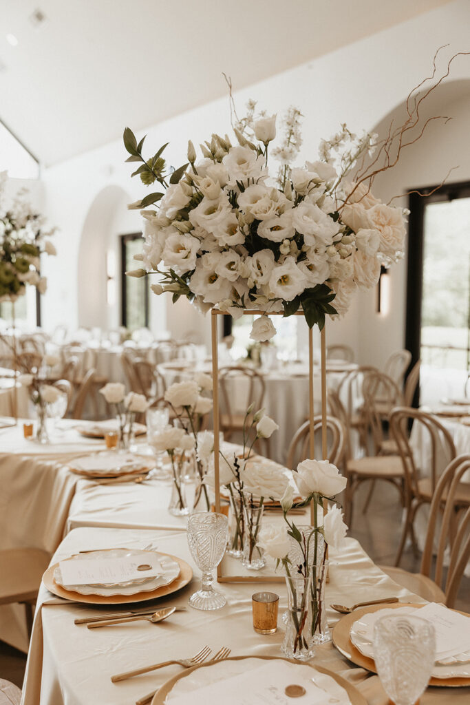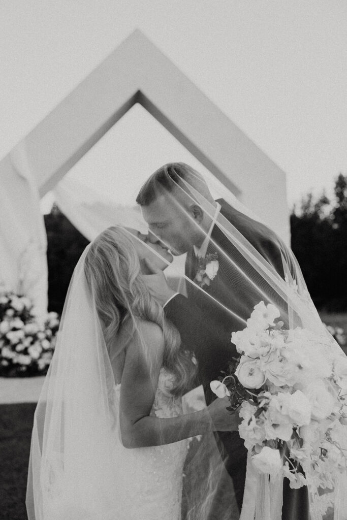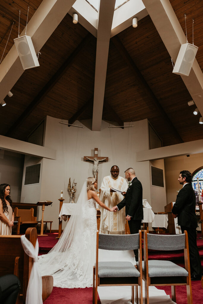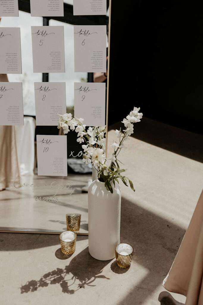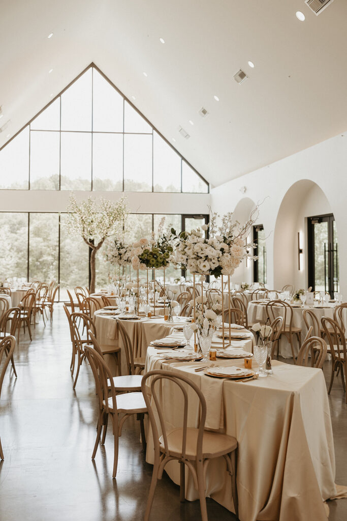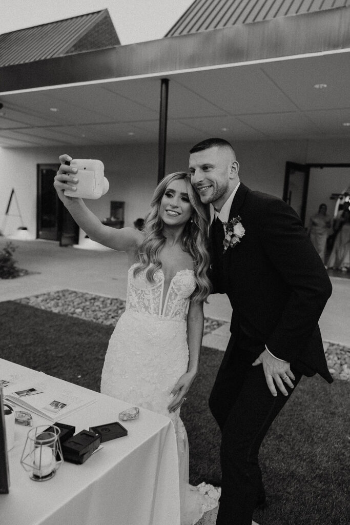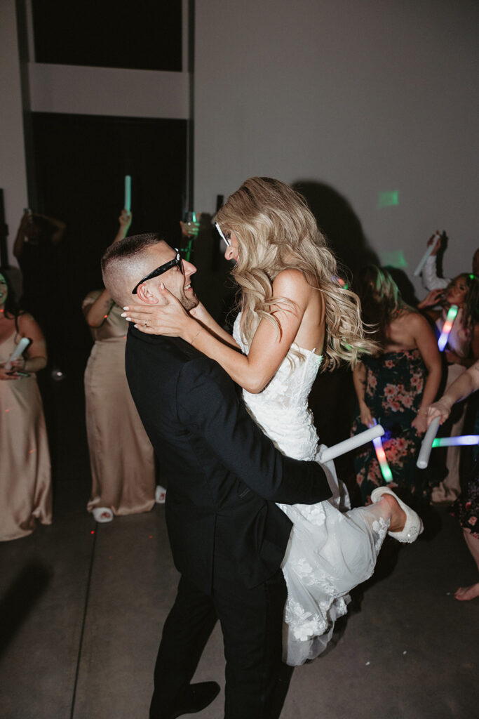 Following their ceremony, they had a time of stunning portraits outside at The Lumen House. Bella Liz Photography captured every detail with the help of Lexa Rae Films and The Mrs. POV. The newlyweds posed underneath the venue’s arch as they documented the momentous occasion. Guests moved into a cocktail hour in the greenhouse, enjoying drinks from Uptown Catering, before being whisked away to the stunning indoor reception.