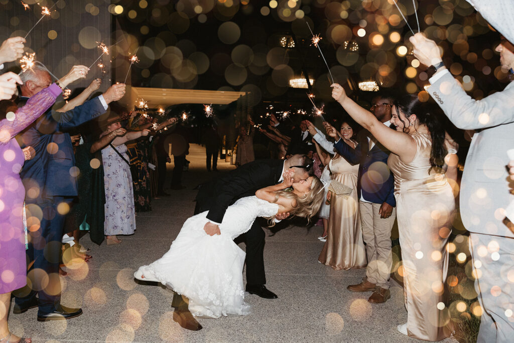 The reception space had winding tables with tan linens and tall white floral arrangements. Rentals from Cooke Rentals helped transform the day into our clients’ dream celebration. After a plated dinner meal, guests made their way onto the dance floor where Salt City DJ brought the energy and vibes. After a crazy after party, our bride and groom called it a night, leaving with a stunning sparkler sendoff. We absolutely loved seeing all of the outdoor portraits at The Lumen House! Even if you have an off-site ceremony, the grounds invite you to utilize their beauty for stunning photos.