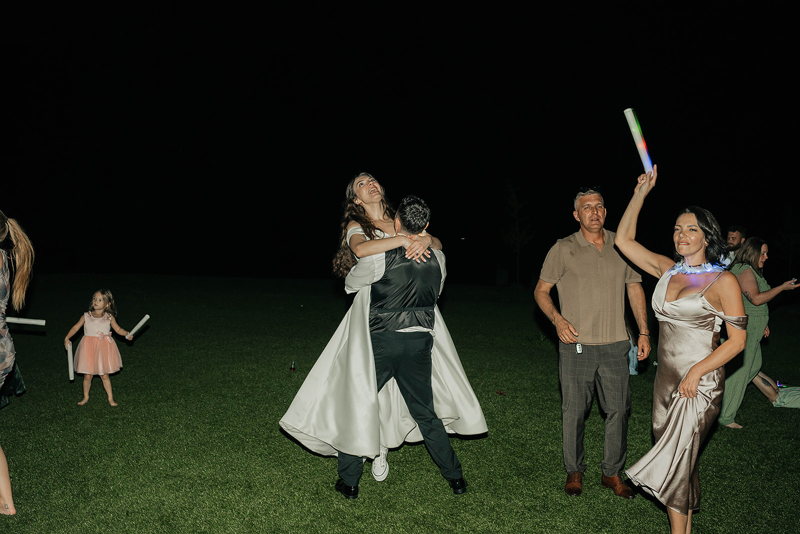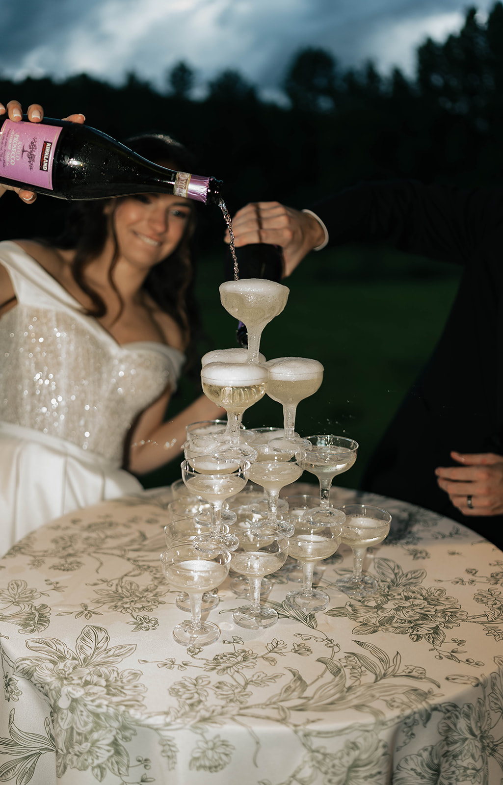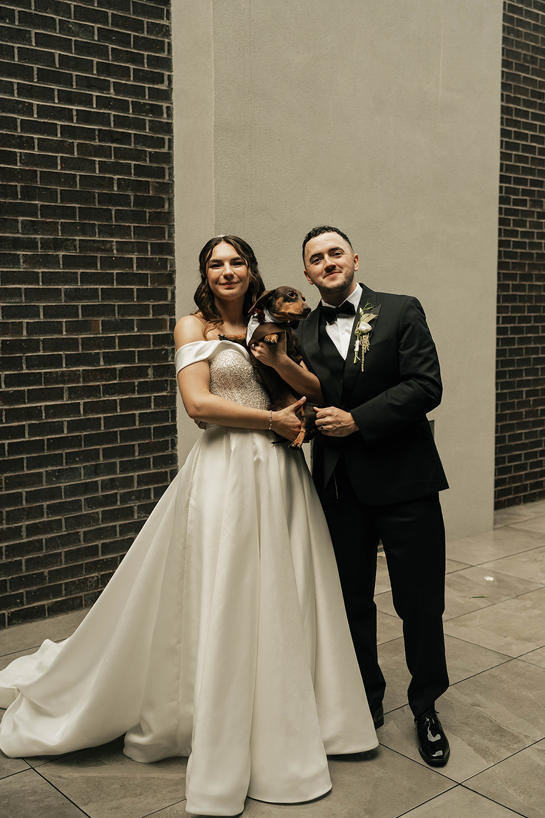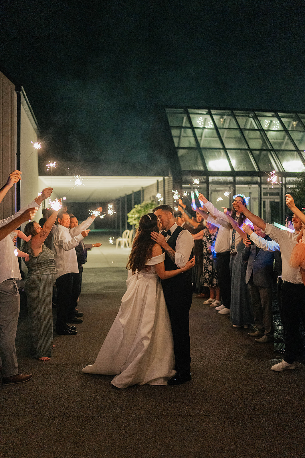 From a fun entrance with the bride and groom in sunglasses to a champagne tower toast, cake cutting, and nonstop dancing powered by Dow Oak Events, the celebration never slowed down. Guests enjoyed food and drinks by Field Pea Catering, a sweet pup walking down the aisle, and a glowing sparkler exit that wrapped up a wedding that was playful, joyful, and unforgettable.