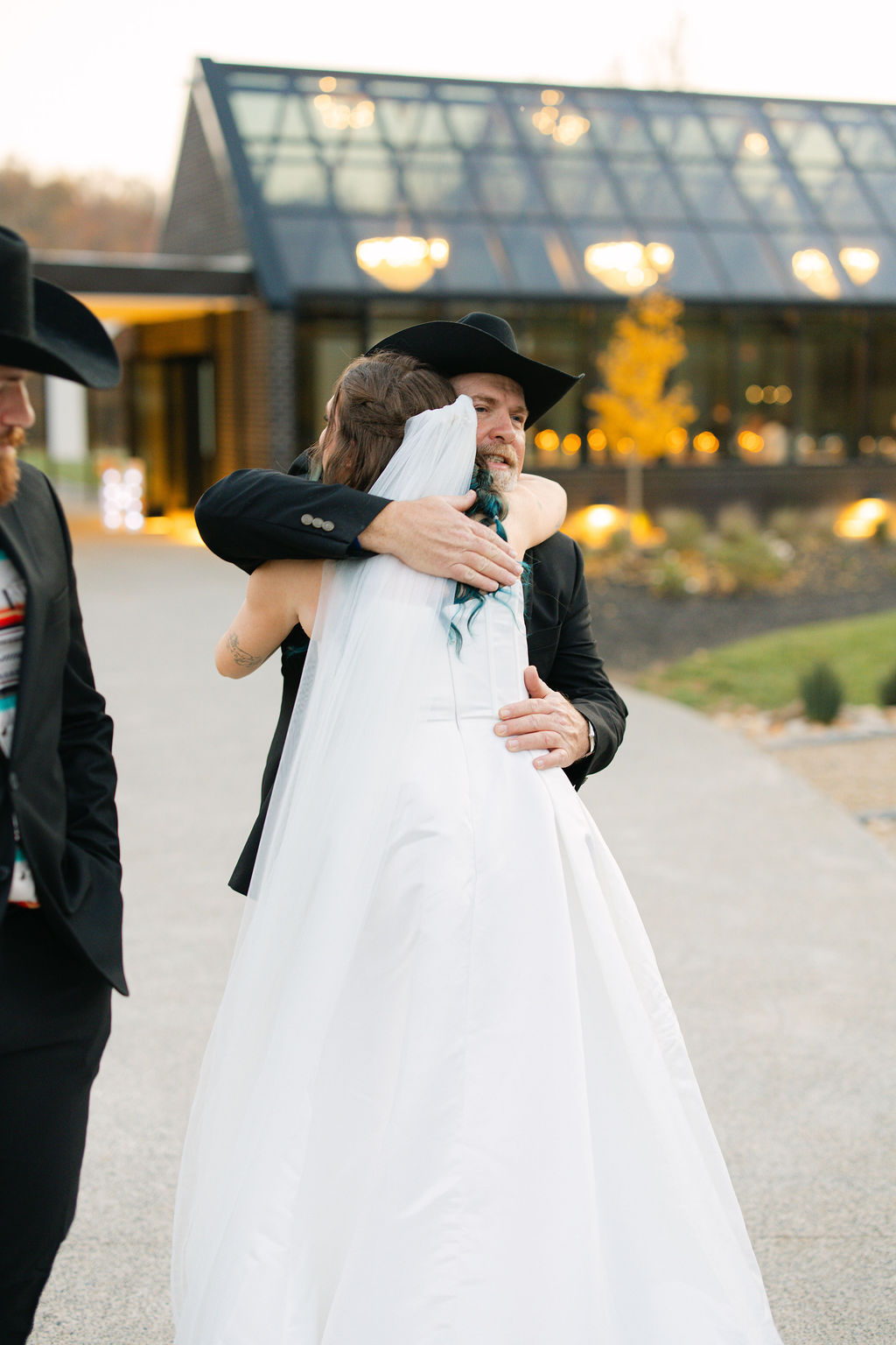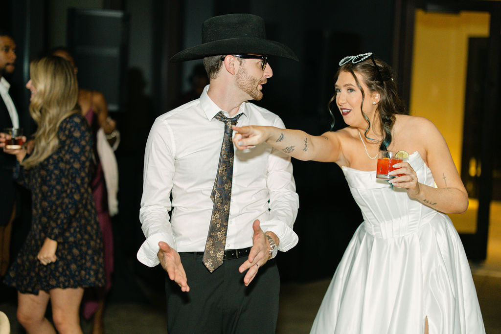 Couick Photography captured each moment with a cinematic, artful touch, highlighting each beautiful moment between Katelin and Jake. Delicate interactions with loved ones were captured for the couple to look back on for years to come. The lush, greenery-filled space amplified the calm romance, making their close-knit celebration unforgettable. Guests enjoyed Mama Ricotta’s catering, savoring its rich, rustic flavors and warm, festive presentation. As the evening continued, the DJ energized the dance floor with a thrilling mix of classic and modern songs. The newlyweds joined the fun with hats and shades, pairing perfectly with vibrant cocktails. Their joy was evident as they danced the night away, their hearts full of love. Katelin and Jake’s micro wedding is a perfect example of an intimate celebration still holding the perfect amount of celebratory energy!