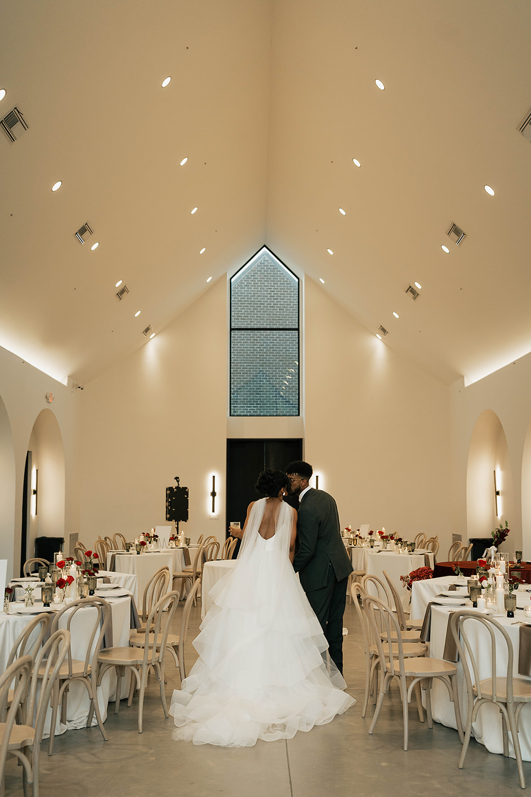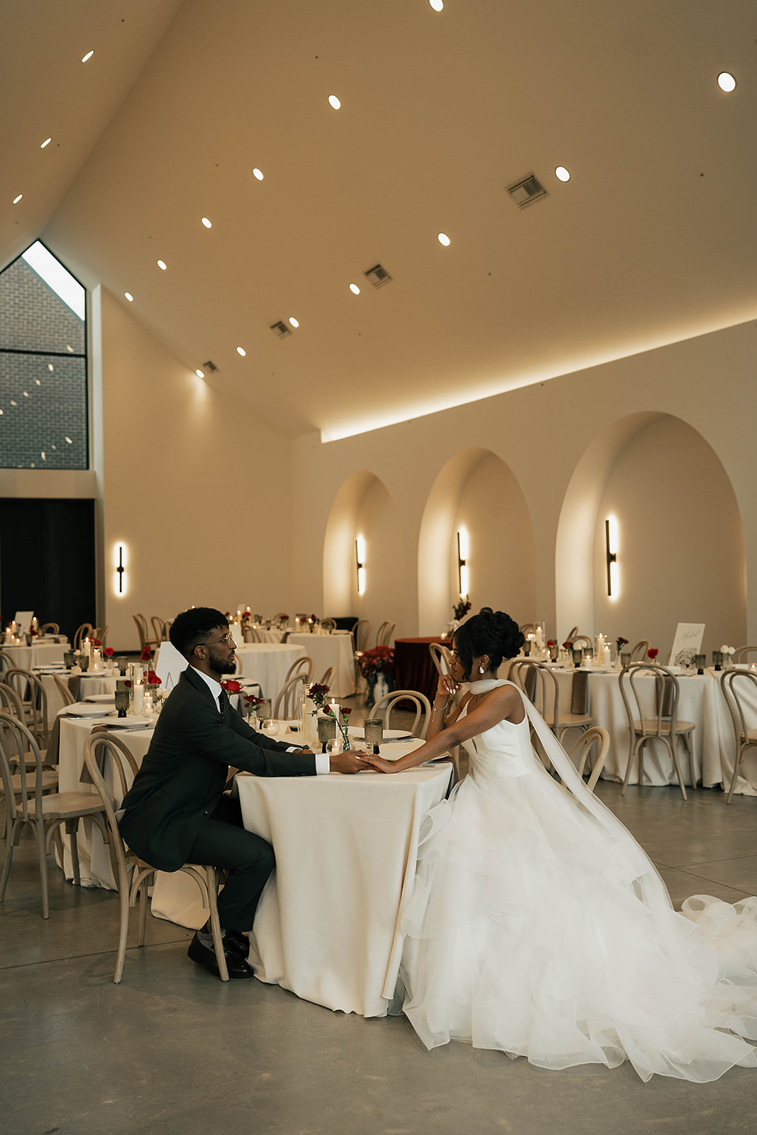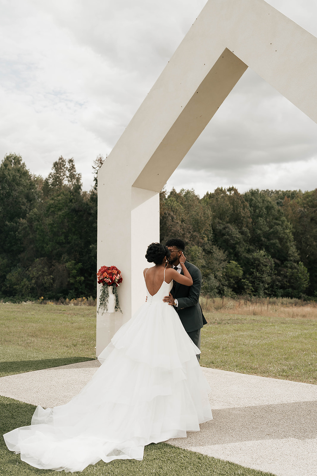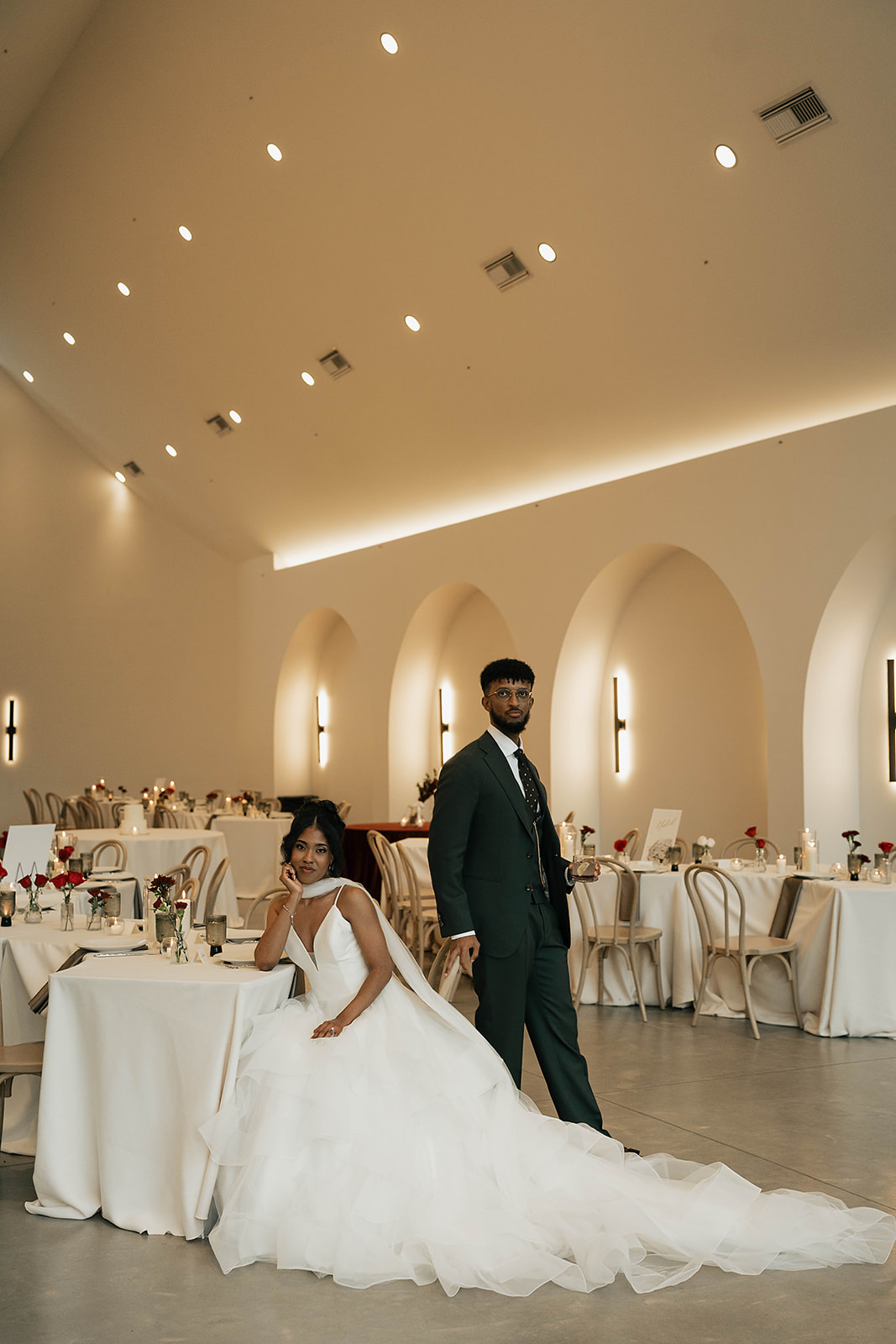 Onyx and Arrow Collective captured the day with a fashion-forward, editorial eye. Kimberly’s gown from New York Bride Last Look perfectly complemented the modern vision, while sleek rentals from Curated Events set the tone for the understated decor. Guests enjoyed an elevated dining experience with QC Catering, followed by a cake cutting from Allie Cakes.