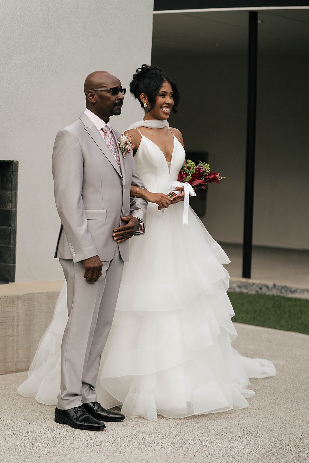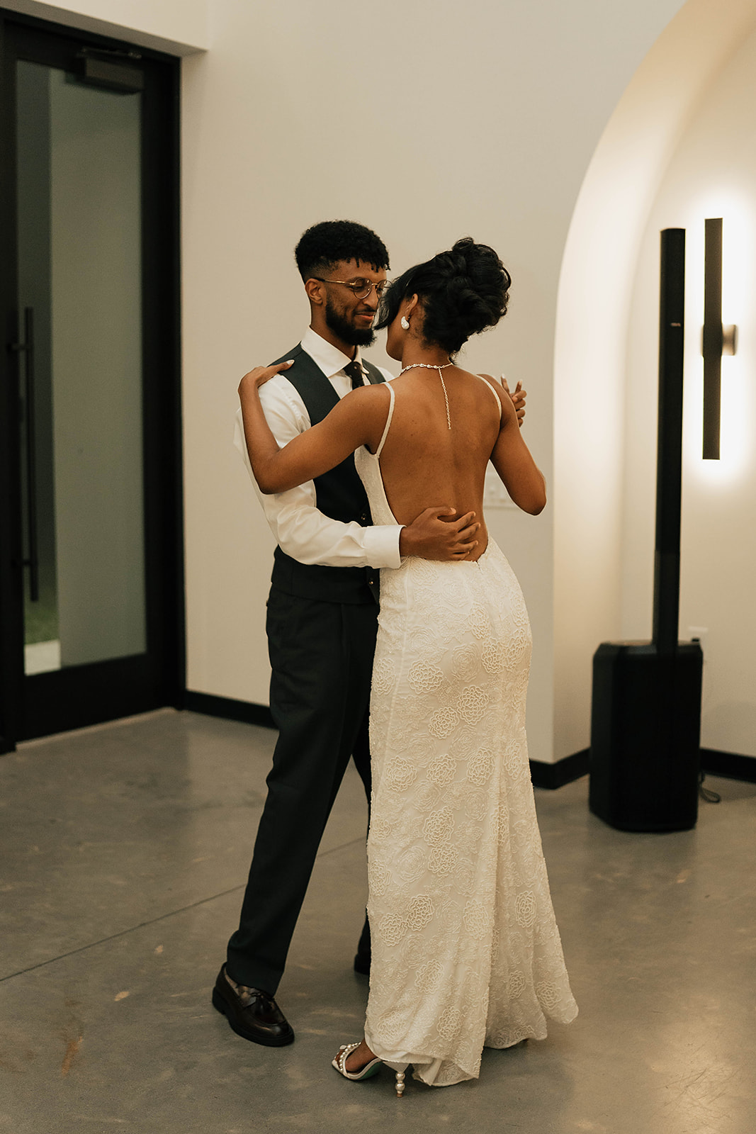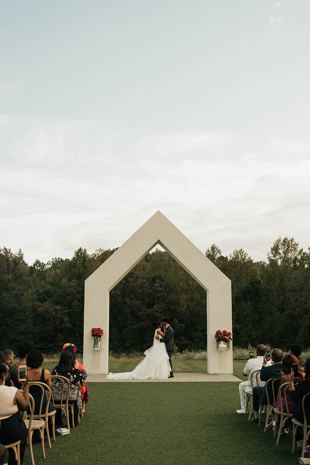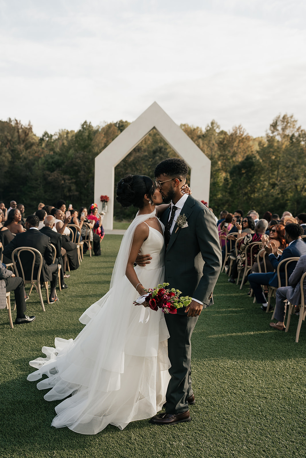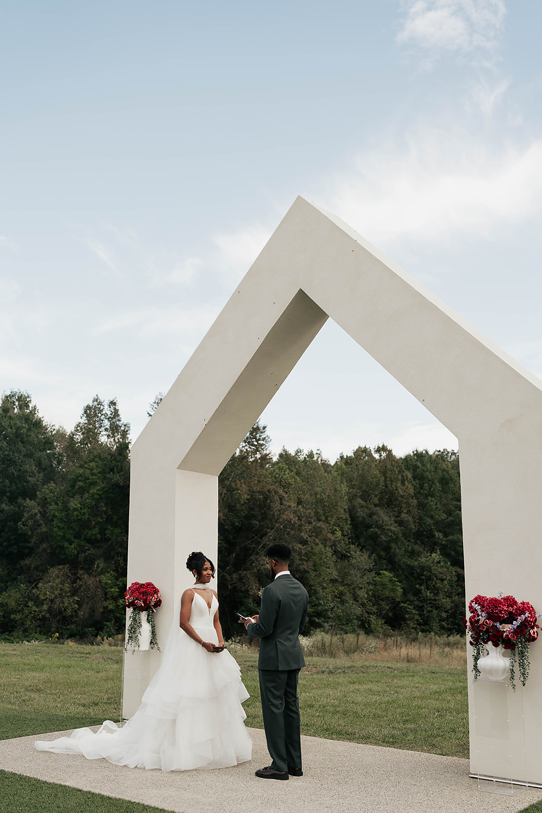 Onyx and Arrow Collective captured the day with a fashion-forward, editorial eye. Kimberly’s gown from New York Bride Last Look perfectly complemented the modern vision, while sleek rentals from Curated Events set the tone for the understated decor. Guests enjoyed an elevated dining experience with QC Catering, followed by a cake cutting from Allie Cakes.