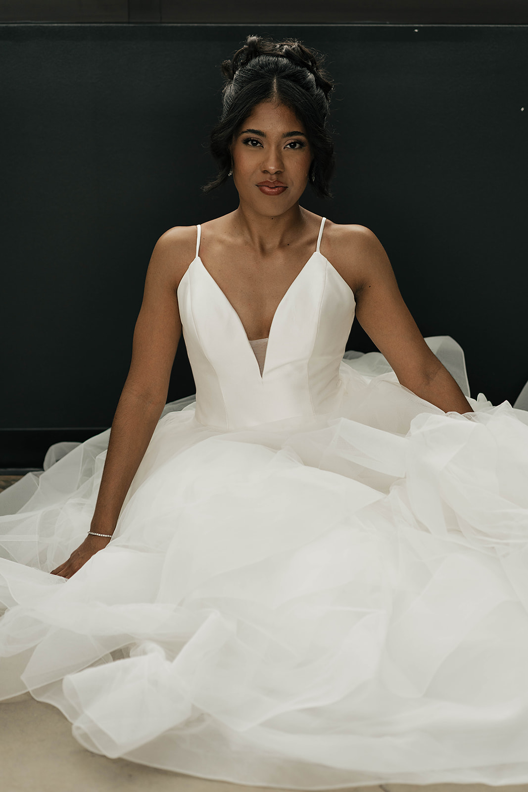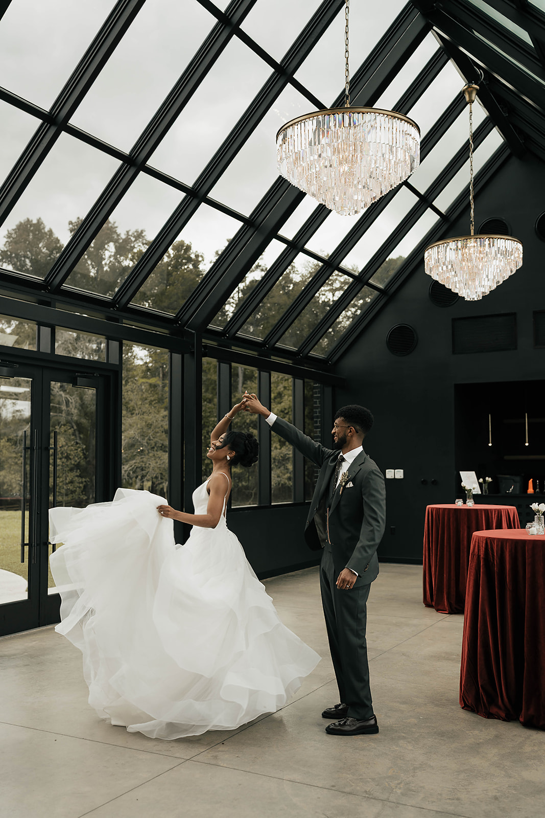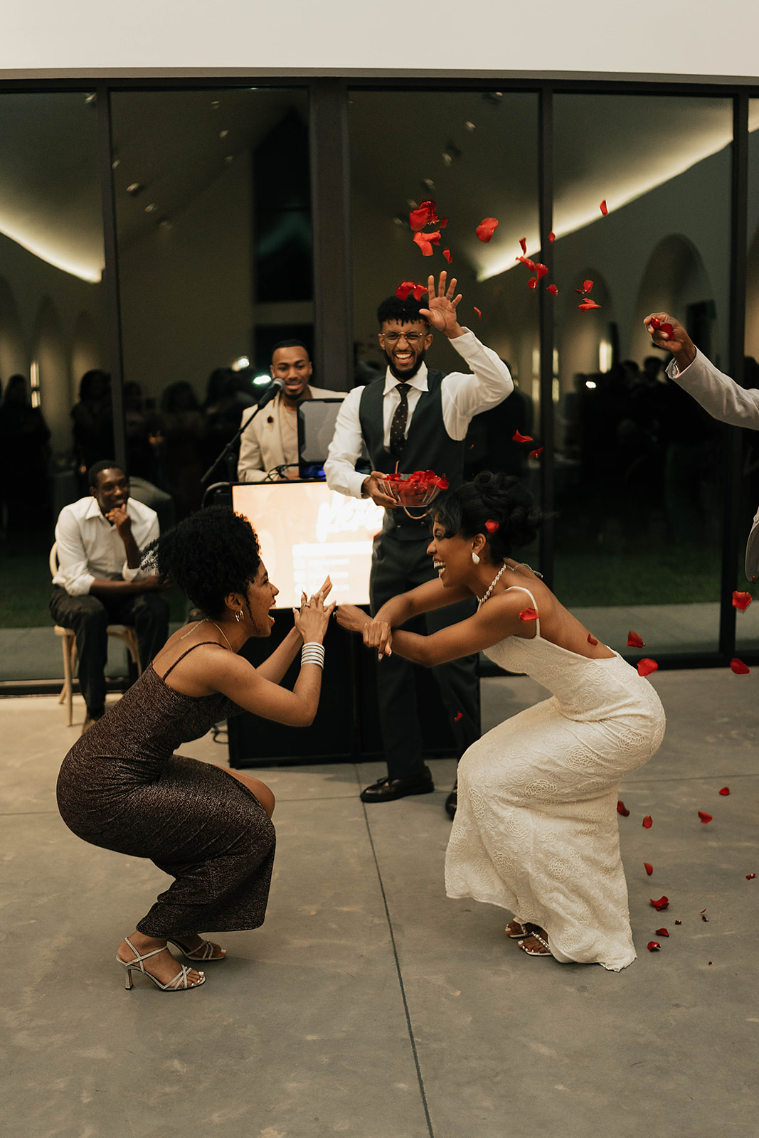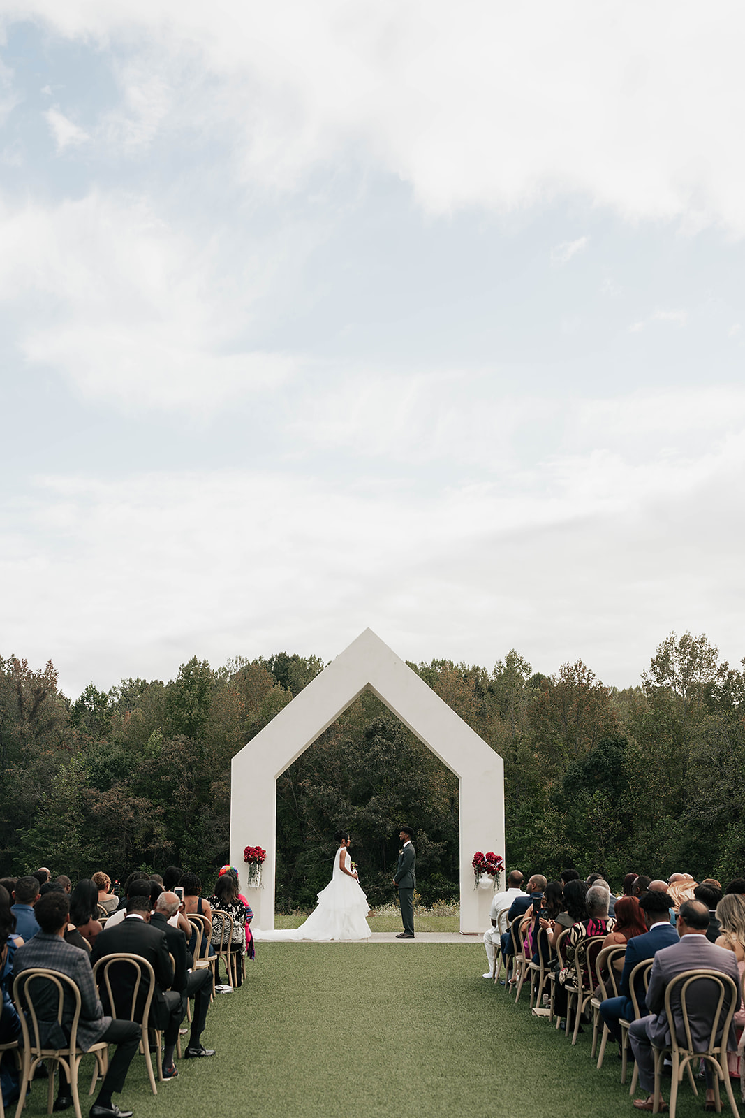 Onyx and Arrow Collective captured the day with a fashion-forward, editorial eye. Kimberly’s gown from New York Bride Last Look perfectly complemented the modern vision, while sleek rentals from Curated Events set the tone for the understated decor. Guests enjoyed an elevated dining experience with QC Catering, followed by a cake cutting from Allie Cakes.
