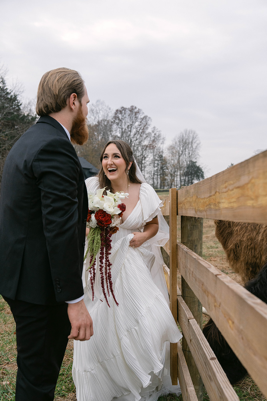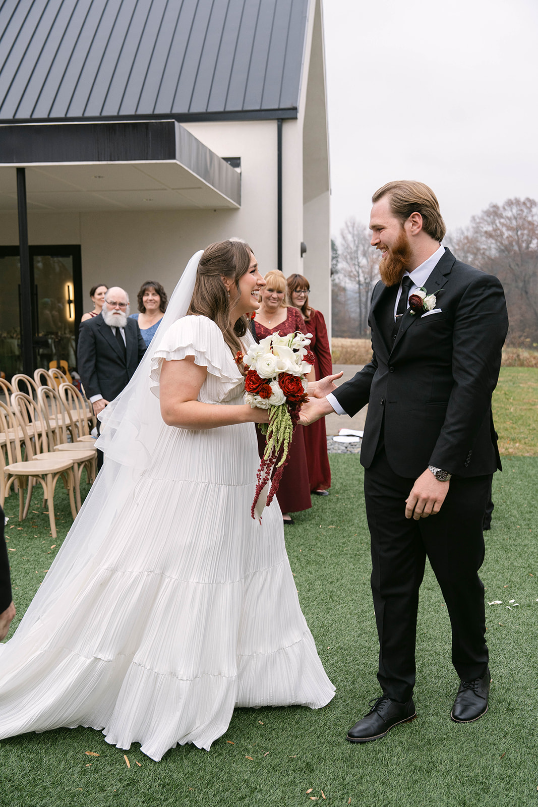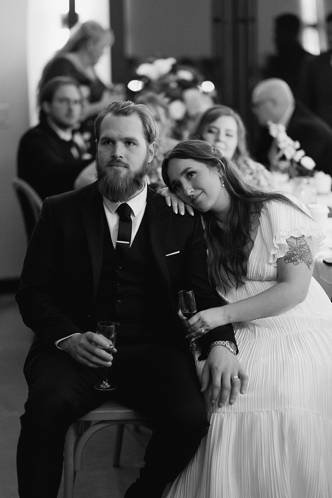 Andre Blom Photography captured the depth and atmosphere of the day with a cinematic, artful approach, preserving both the moody tones and the joyful energy shared between Olivia and Jacob. Olivia’s look was completed with soft, polished hair by Ashley Steganga, while romantic, modern florals by Zooms and Blooms added texture and movement to the design.