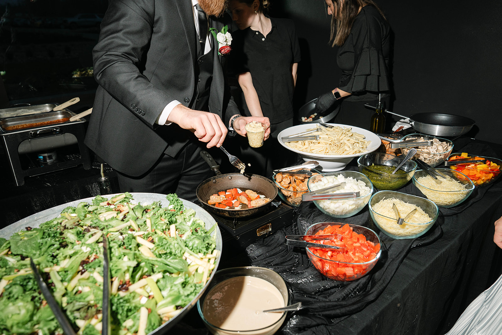 Guests enjoyed a comforting and elevated pasta station dining experience with Family Catering Services, sweet treats from The Good Cakes and Our Coffee Shop, and coffee from Good Ground Coffee Co. As the evening continued, Cheers The Collective kept the celebration alive, creating a joyful, high-energy atmosphere. Olivia and Jacob’s wedding was a stunning reflection of modern love, emotional, stylish, and filled with happiness.