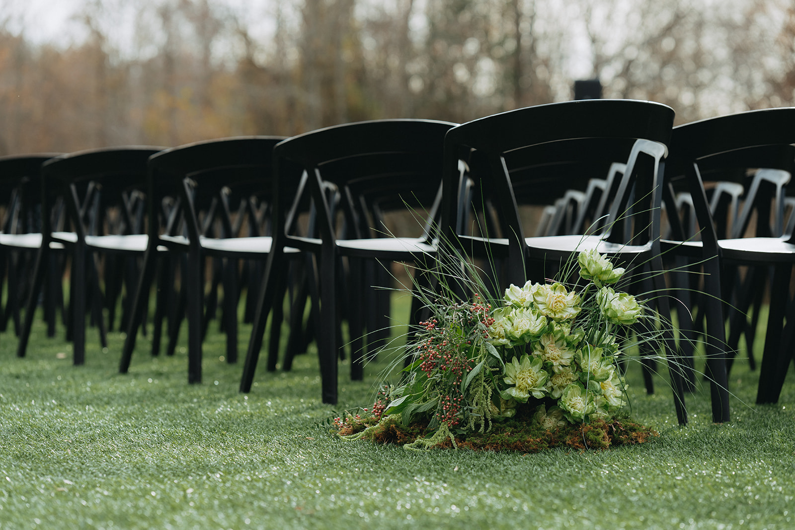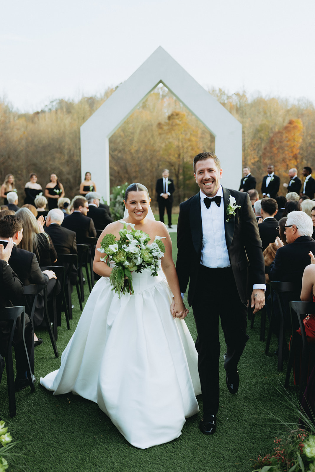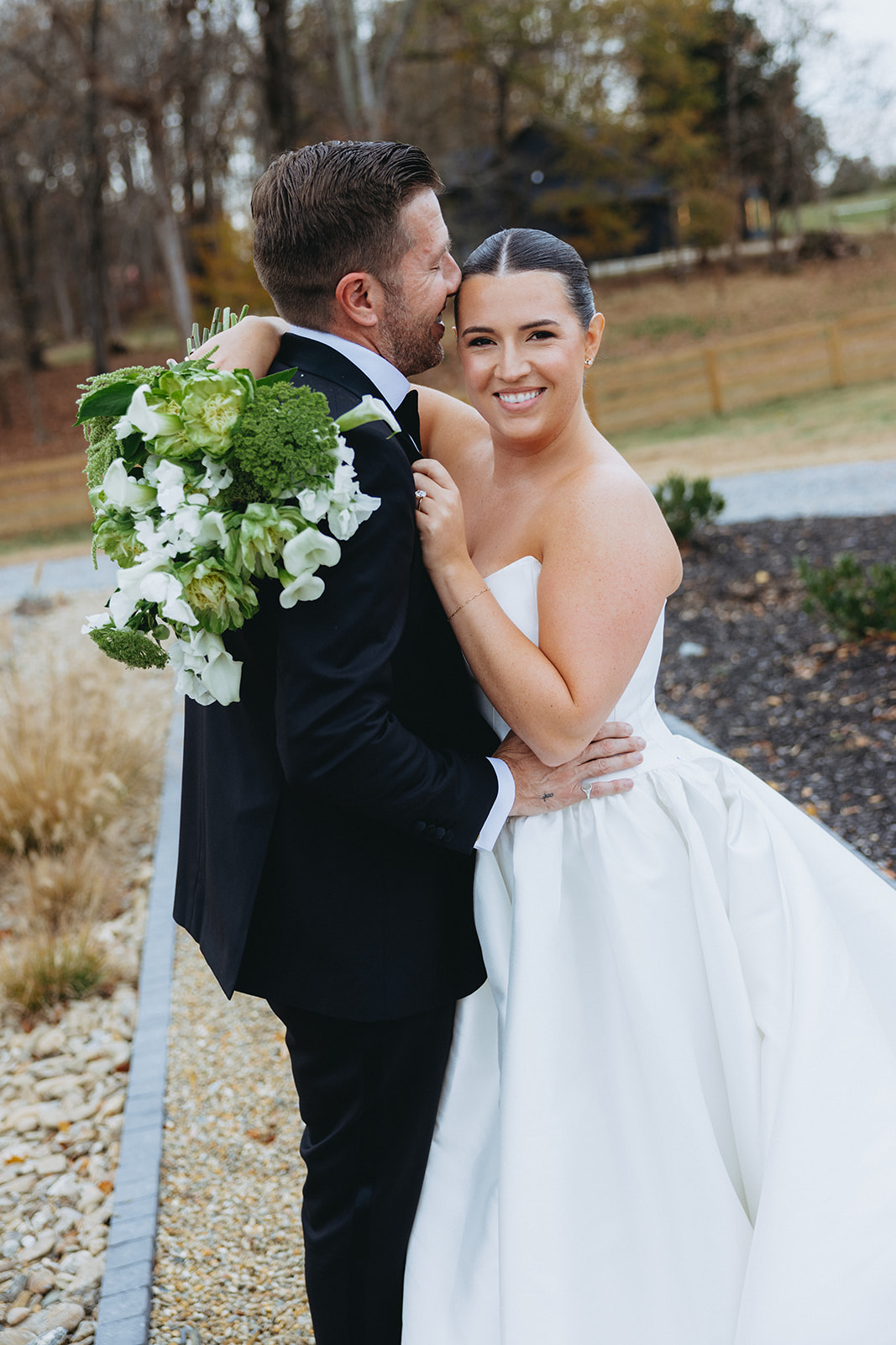 As the sun began to set, guests were greeted with a glowing celebration indoors as they enjoyed a plated meal and fellowship at the space’s long tables. The reception featured a powerful blend of live music and buzzing conversation, as loved ones mingled amongst the newlyweds. The guests clinked glasses of finely crafted cocktails provided by Black Moth as they enjoyed dinner and dessert. The energy was intoxicating as everyone danced the night away to beats from Active DJ. Taylor and Josh’s day was a picture perfect North Carolina wedding with a harmonious blend of deep greens and black, soft moments and vibrant excitement. Cheers to T&J!