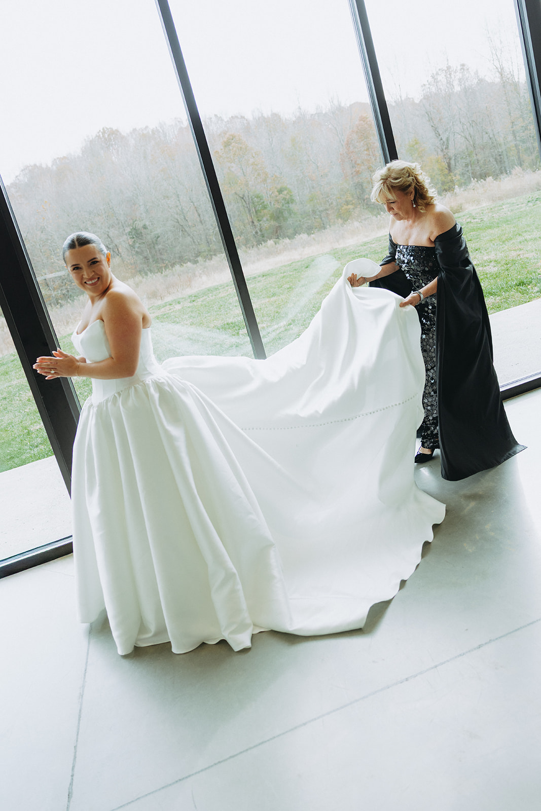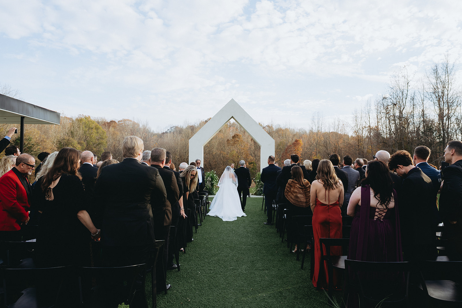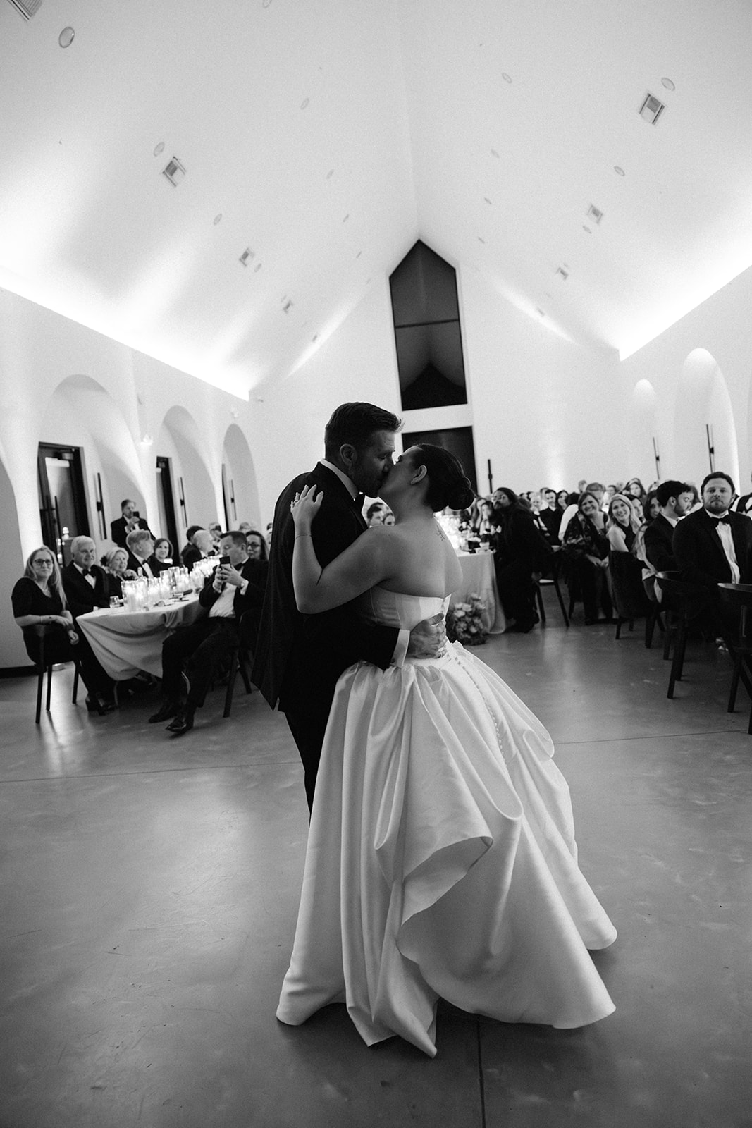 As the sun began to set, guests were greeted with a glowing celebration indoors as they enjoyed a plated meal and fellowship at the space’s long tables. The reception featured a powerful blend of live music and buzzing conversation, as loved ones mingled amongst the newlyweds. The guests clinked glasses of finely crafted cocktails provided by Black Moth as they enjoyed dinner and dessert. The energy was intoxicating as everyone danced the night away to beats from Active DJ. Taylor and Josh’s day was a picture perfect North Carolina wedding with a harmonious blend of deep greens and black, soft moments and vibrant excitement. Cheers to T&J!