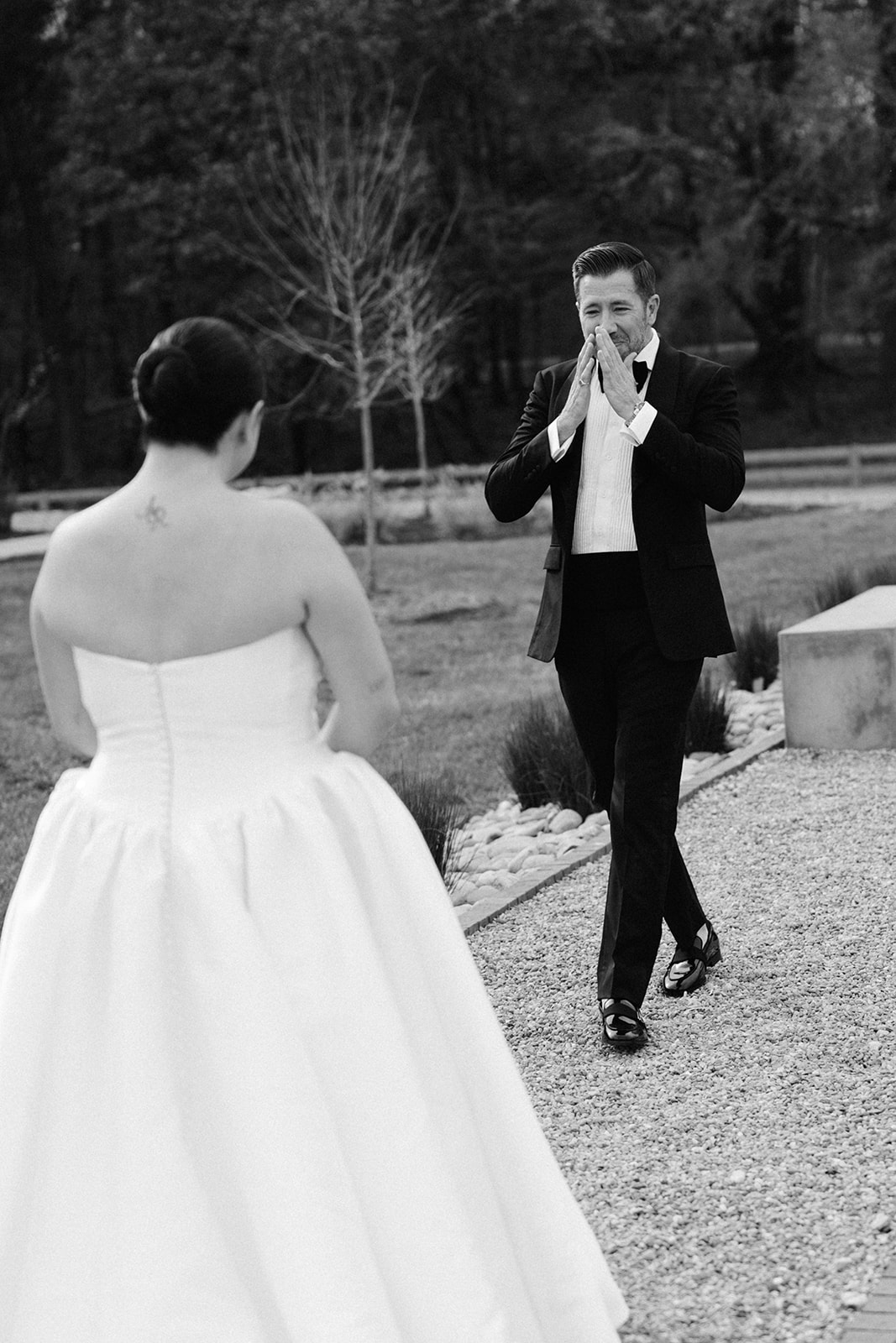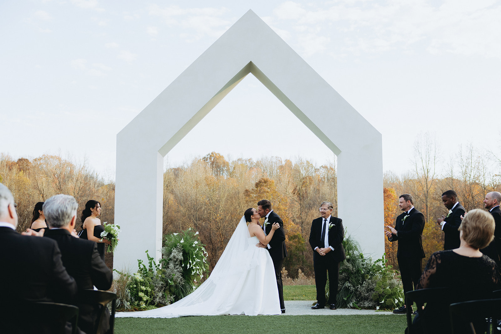 Taylor and Josh’s wedding day radiated romance, elegance, and warmth. The Lumen House set the stage for a truly magical celebration, thoughtfully planned by The Gathering Co. Erika Alexis Beauty perfected Taylor’s look with soft and elegant makeup that seamlessly complemented Beauty By Yvonee’s sleek bun, creating a harmonious style for our bride. The bride and groom met for an intimate first look outside as they posed for portraits ahead of the ceremony.