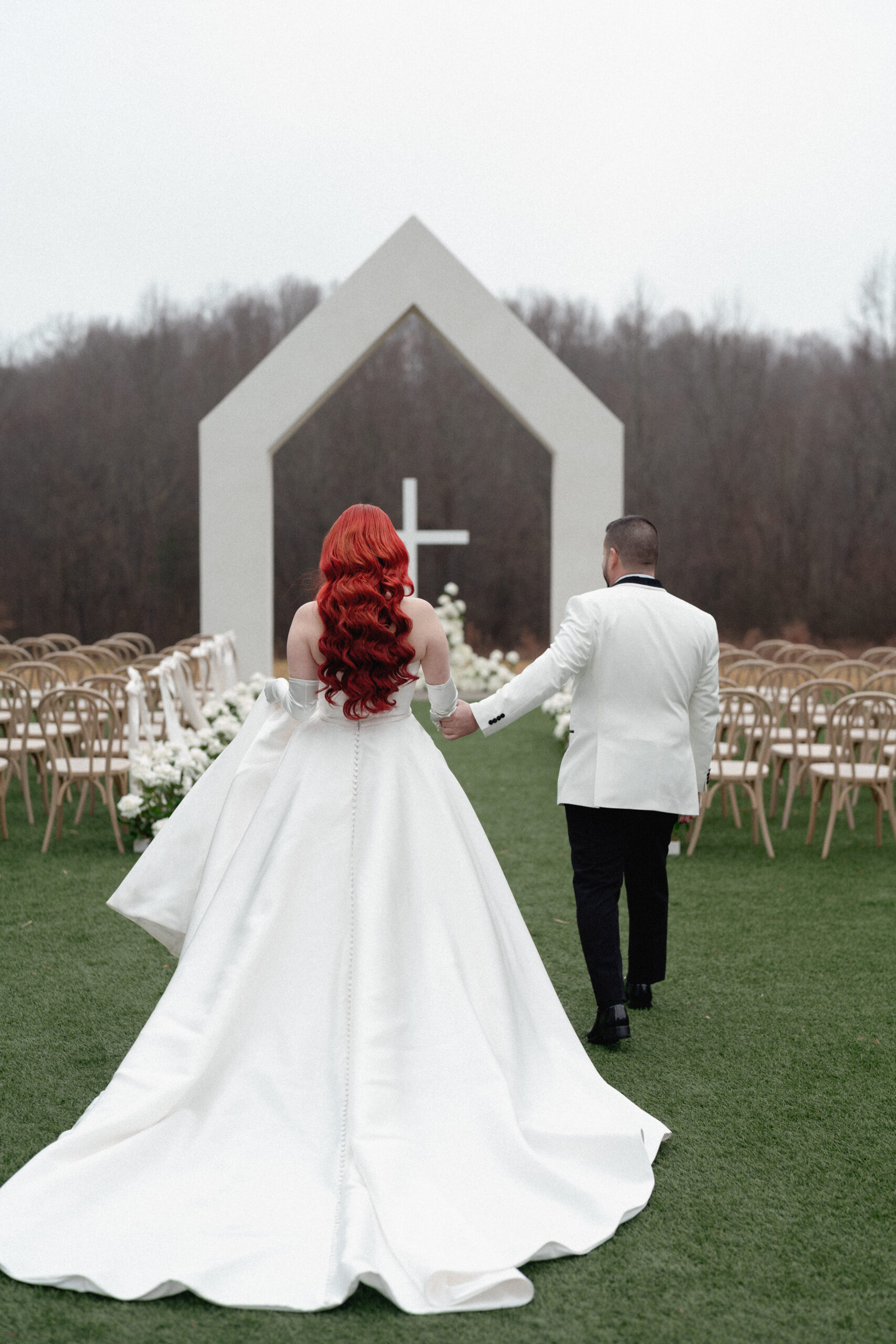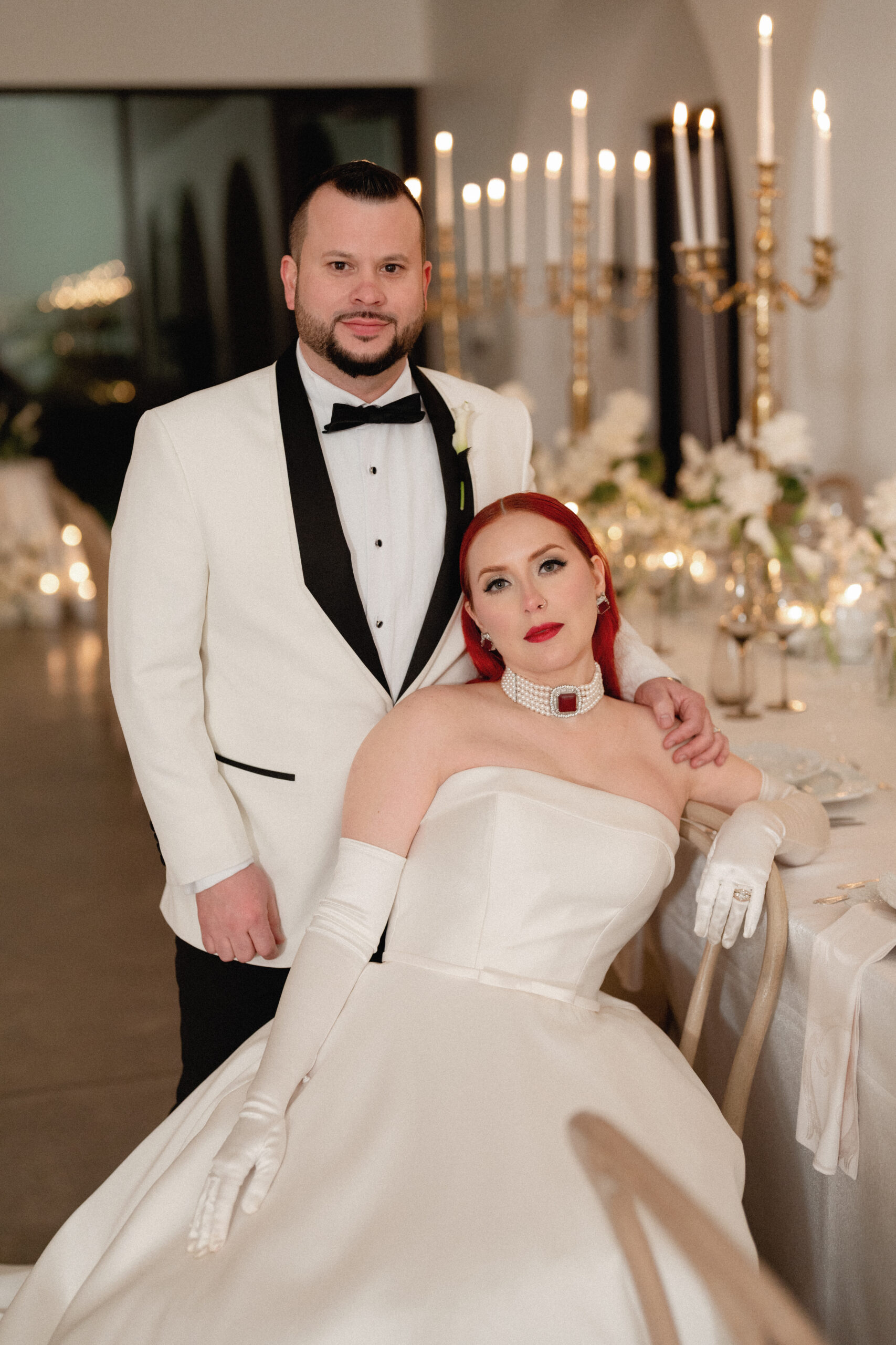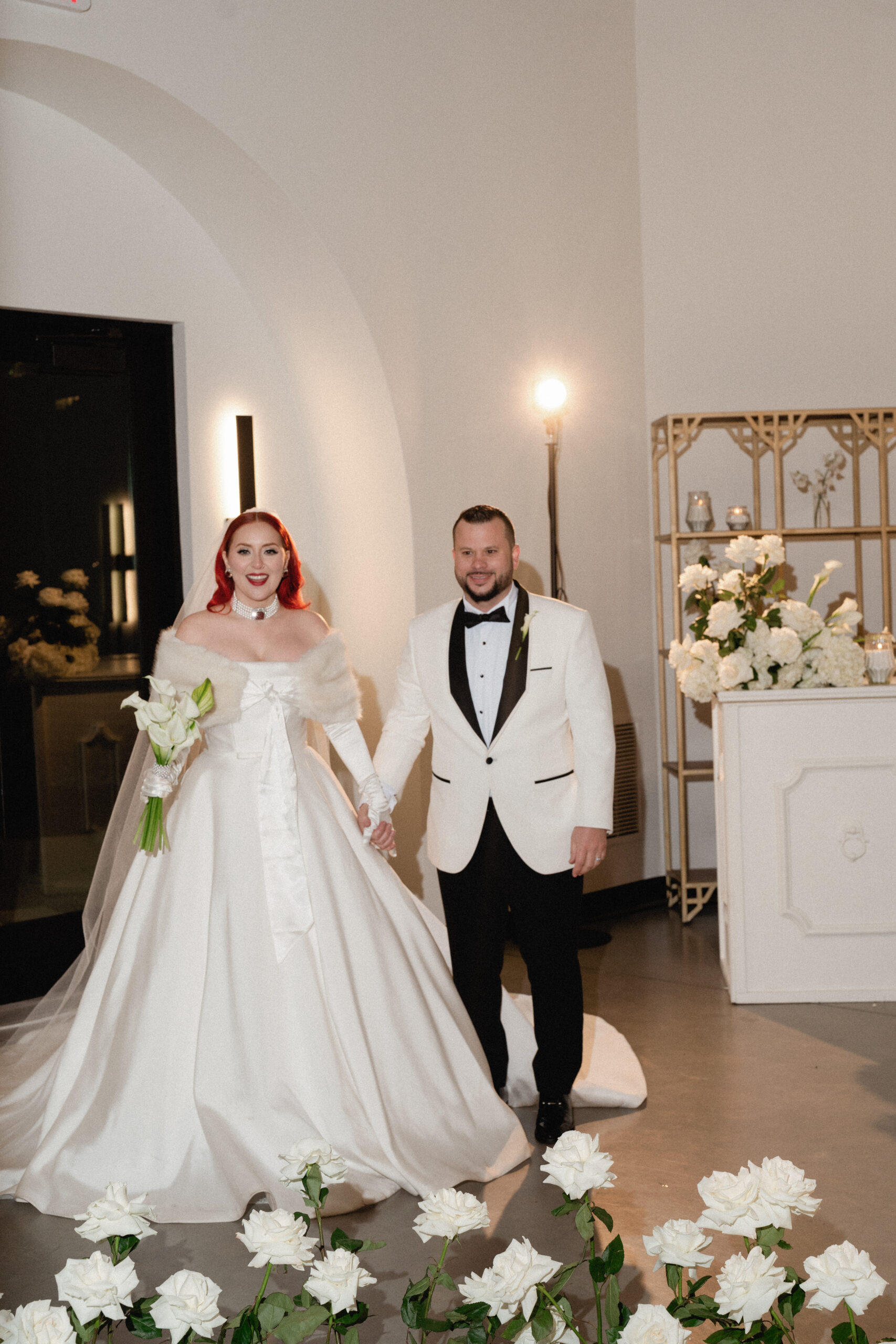 Paola and Alejandro exchanged vows during their winter wedding celebration at The Lumen House. Their day was marked with the essence of gilded glamour and golden elegance as the crisp North Carolina air set the stage for a stunning day of celebrations. Juan Zabala captured each timeless moment by preserving the winter mood with elegance and timeless imagery. With impeccable planning and refined aesthetic, Weddings by Yaz was able to create a celebration both intimate and polished. Paola’s look was styled with soft, cascading fiery red curls framing her face, complemented by a bold red lip provided by Sarias Makeup Artist.