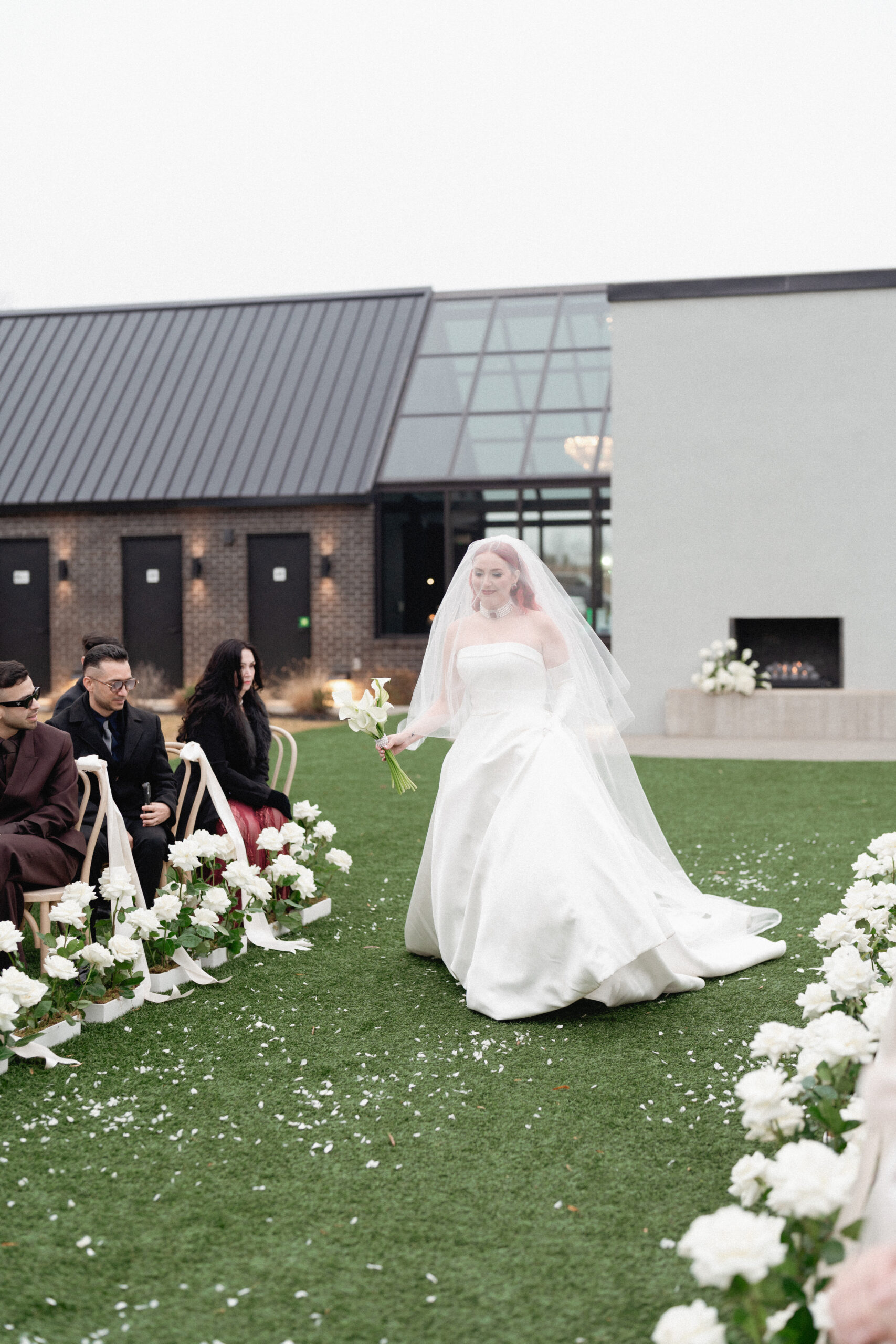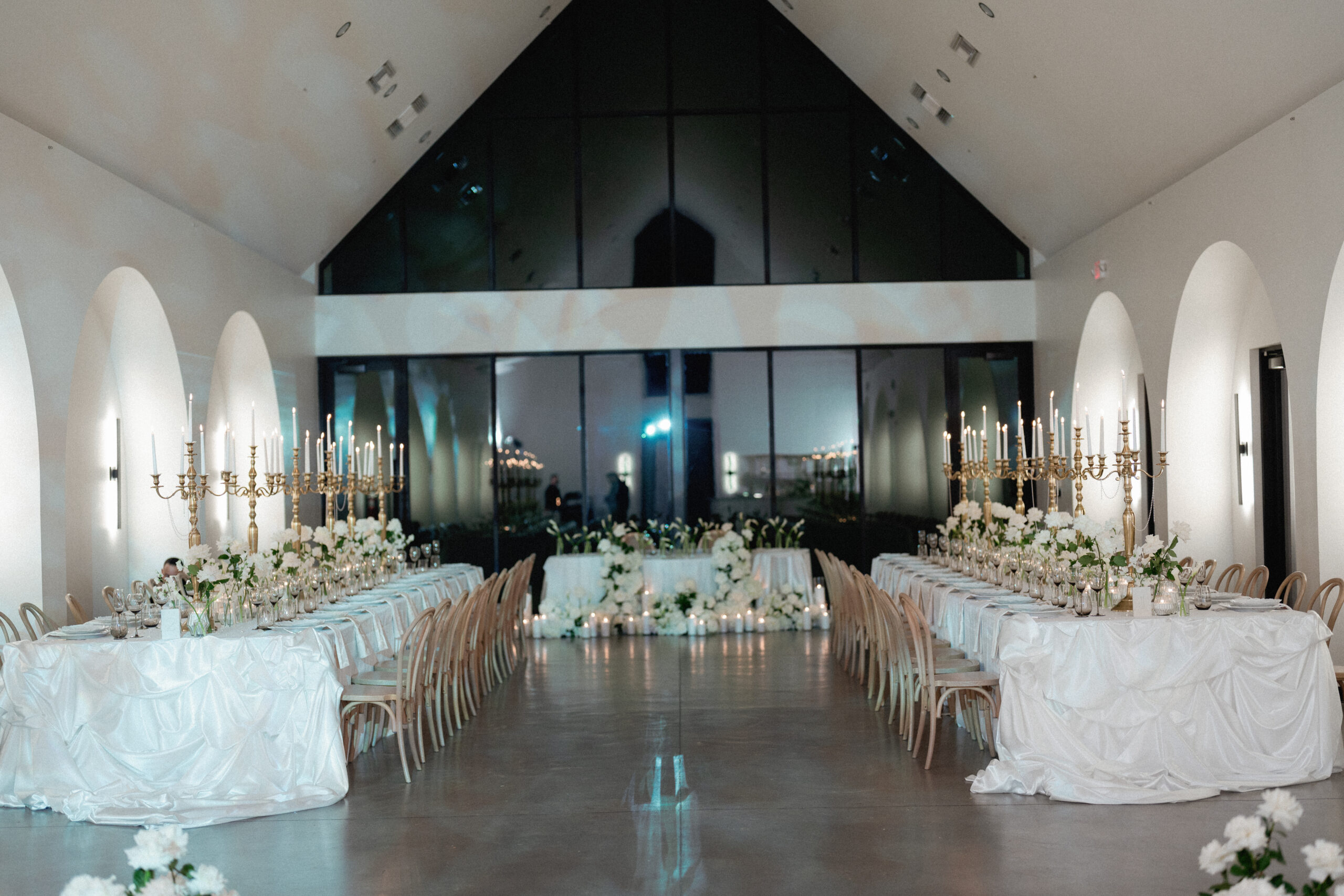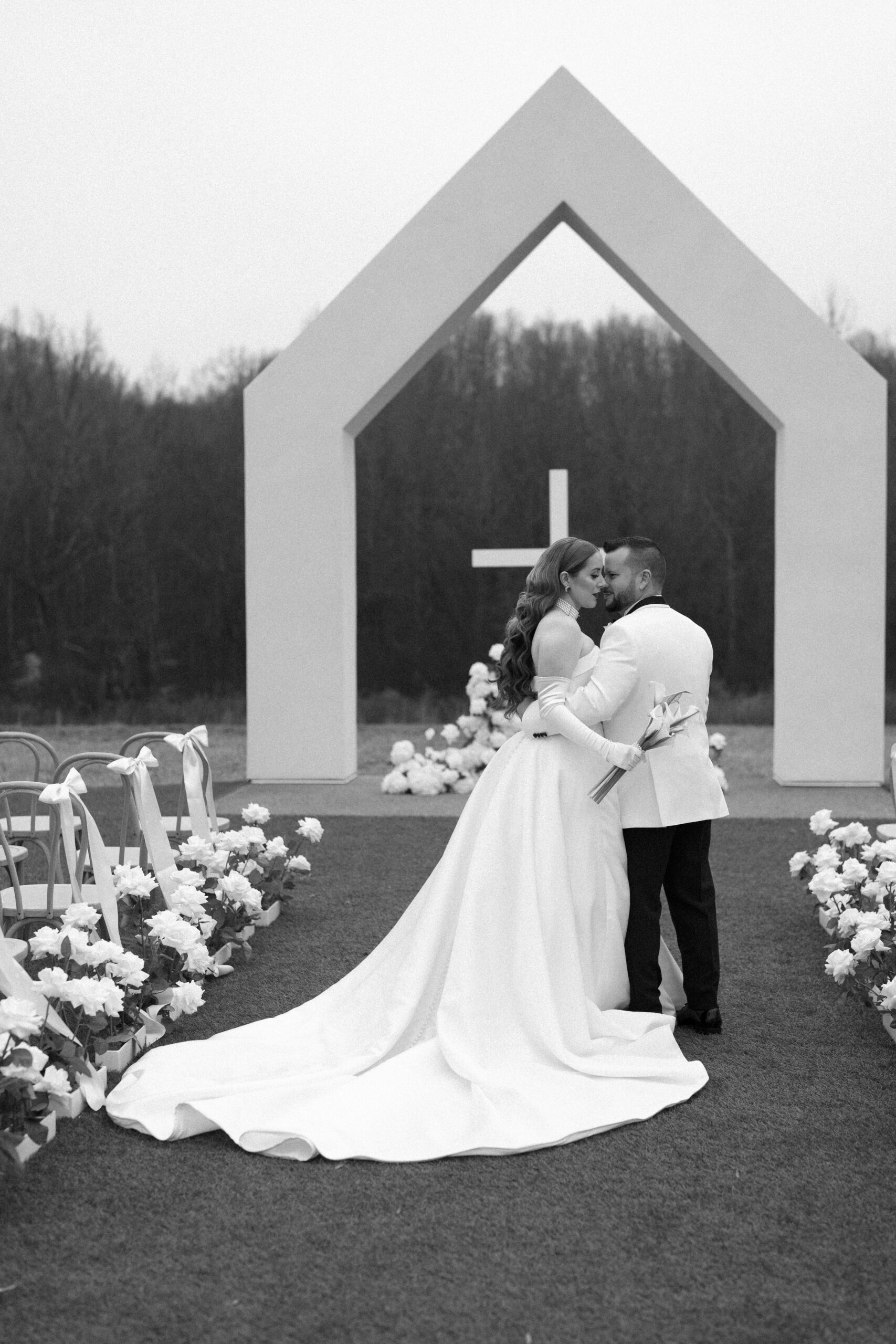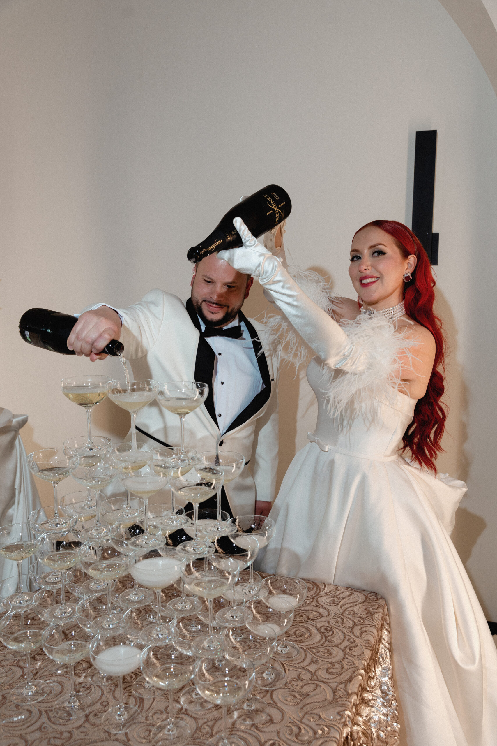 Paola and Alejandro exchanged vows during their winter wedding celebration at The Lumen House. Their day was marked with the essence of gilded glamour and golden elegance as the crisp North Carolina air set the stage for a stunning day of celebrations. Juan Zabala captured each timeless moment by preserving the winter mood with elegance and timeless imagery. With impeccable planning and refined aesthetic, Weddings by Yaz was able to create a celebration both intimate and polished. Paola’s look was styled with soft, cascading fiery red curls framing her face, complemented by a bold red lip provided by Sarias Makeup Artist.