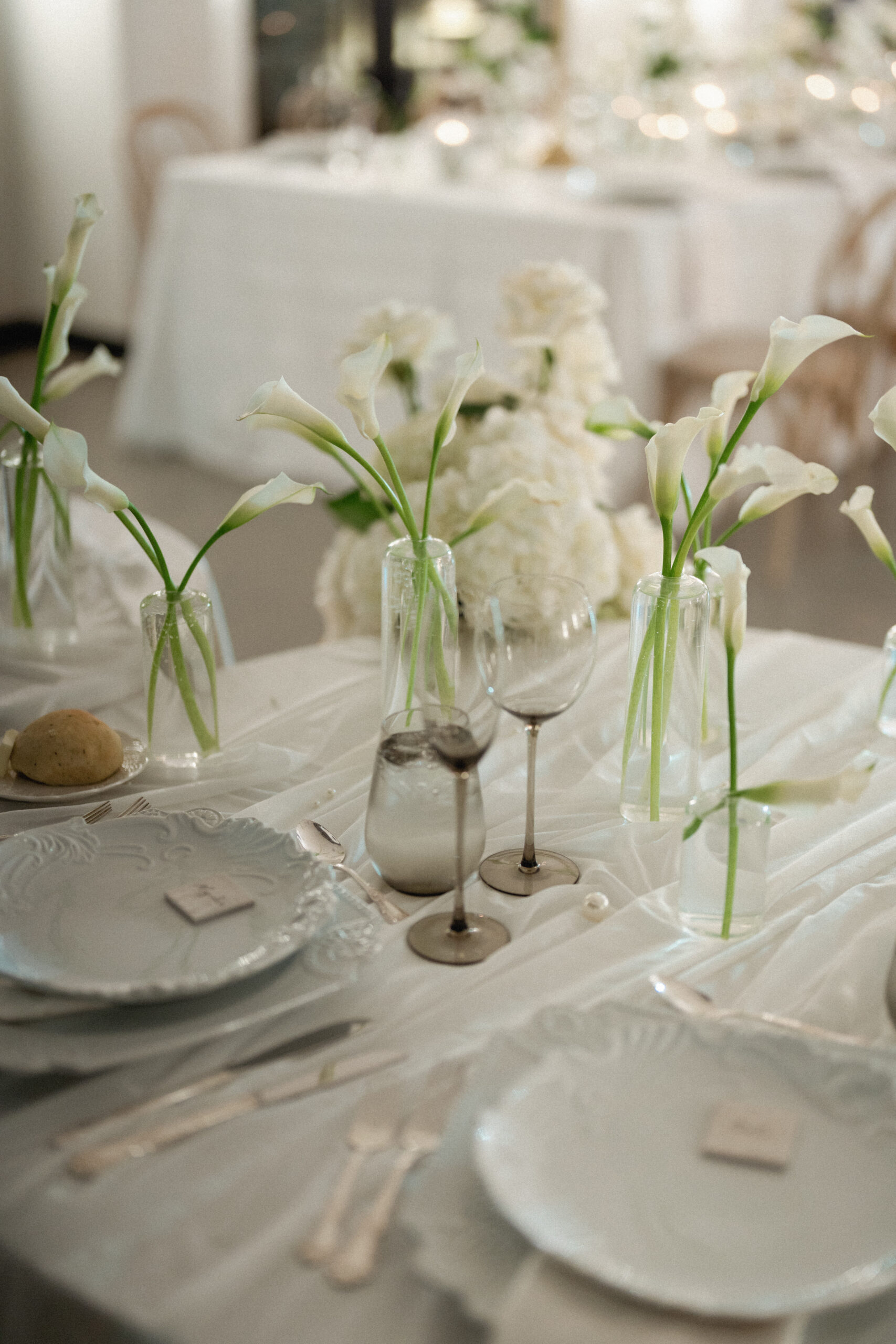 Seeded Events & Design provided delicate white floral arrangements, that lined the aisle, along with a dainty lily bouquet for the bride. Gold candelabras lined the long regal tables awaiting the guests for an opulent and romantic reception celebration. Guests enjoyed flavorful, decadent hors d’oeuvres before a plated dinner by Family Catering. A custom white wedding cake, designed by Cake it Everyday, followed. Our bride and groom filled the cake with berries and topped them with powdered sugar before digging in. As the evening continued, the Deans’ Duets serenaded the crowd with their powerful voices and skillful playing. The newlyweds danced the night away with joy and bliss. Paola and Alejandro’s wedding was a testament to graceful love, vintage details, and the beauty of a winter wedding in North Carolina.